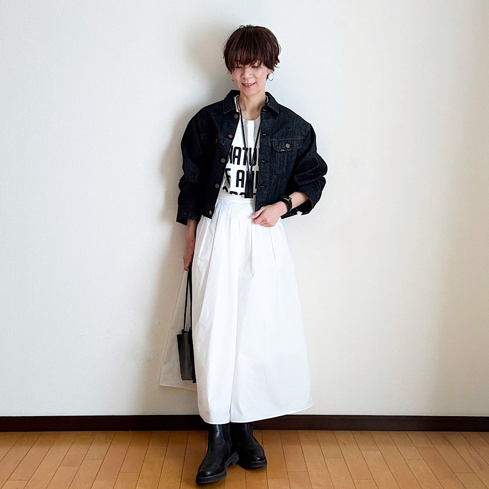 白のやわらかさと、ブラックGジャンのかっこよさ。