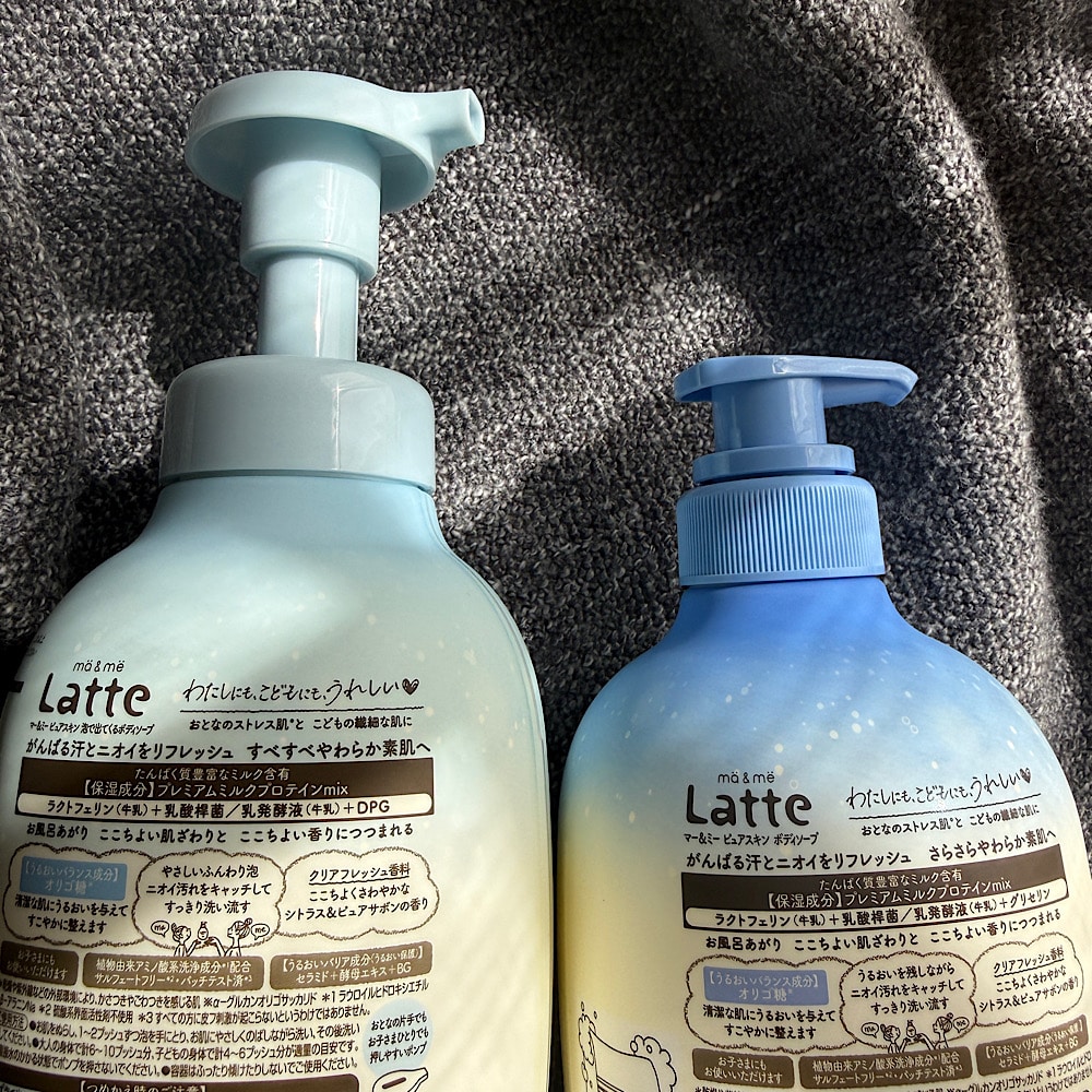 このたび、クラシエ マー&ミー ラッテ【マー&ミー ピュアスキン 泡で出てくるボディソープ】と【マー&ミー ピュアスキン ボディソープ】をお試しさせていただきました。