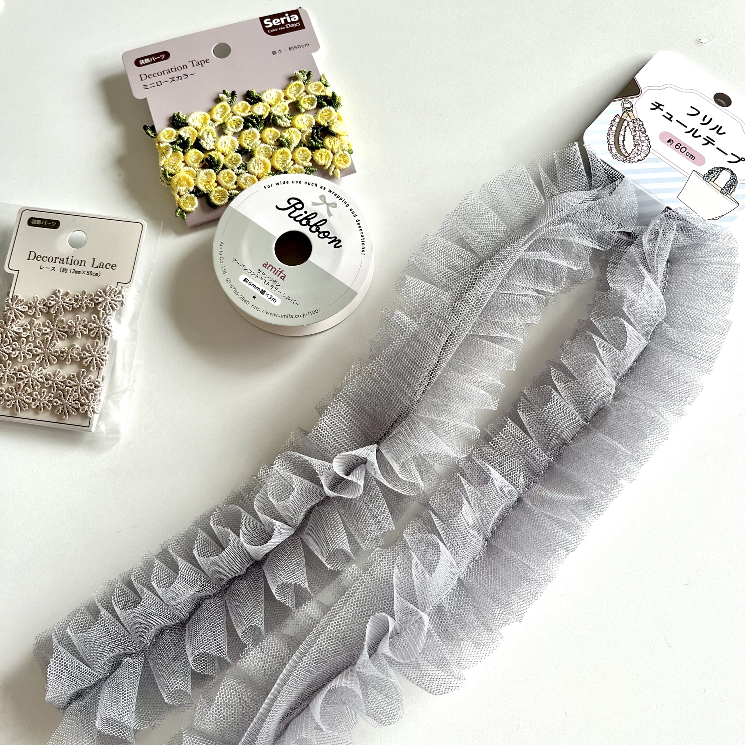 セリアのラッピング用リボンとレースなどを買い込んできました