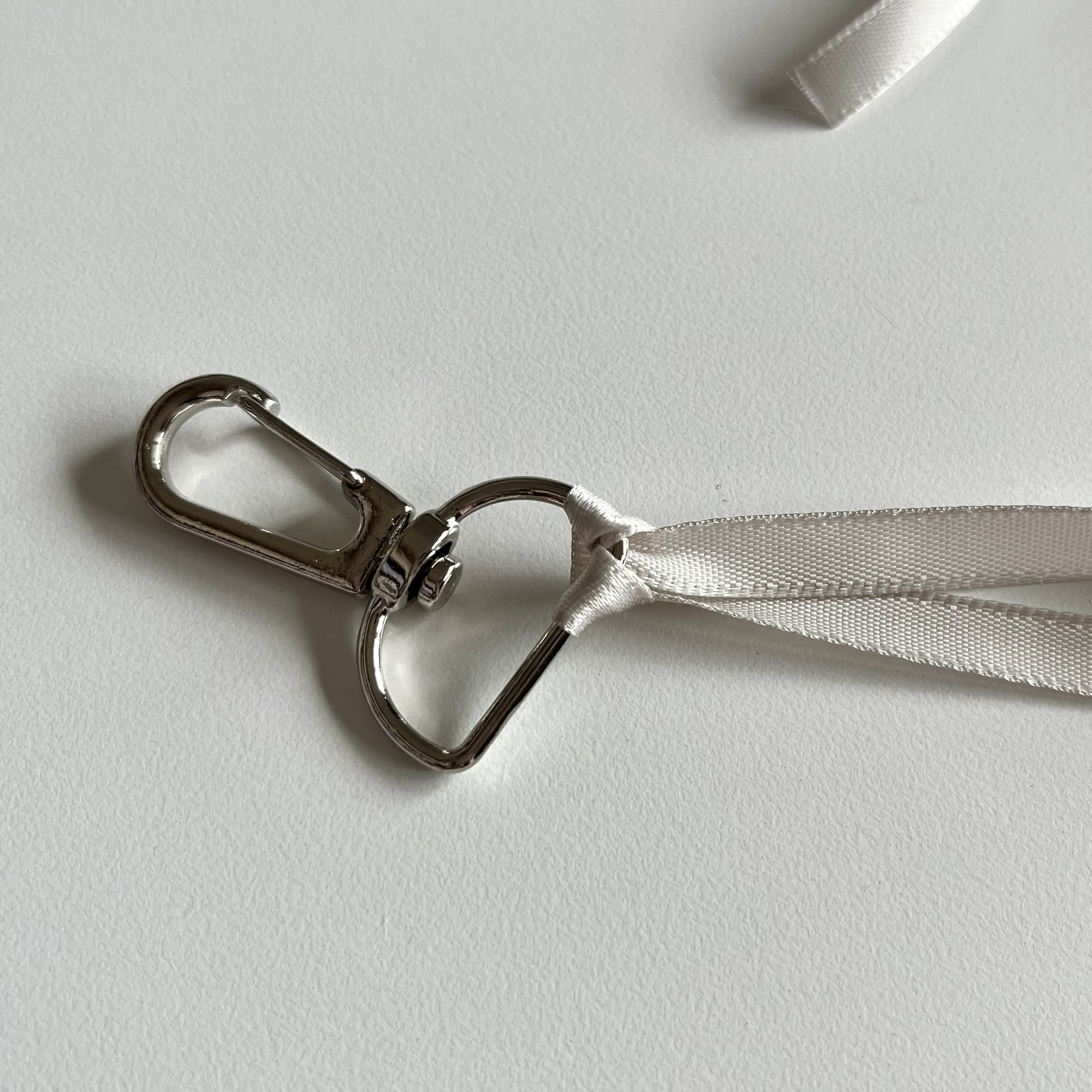 ハギレのタッセルのように、金具に通して巻きつけても良いのですが…リボンの表面を綺麗に見せたいと思い、くるりんぱで金具に巻きつけました。