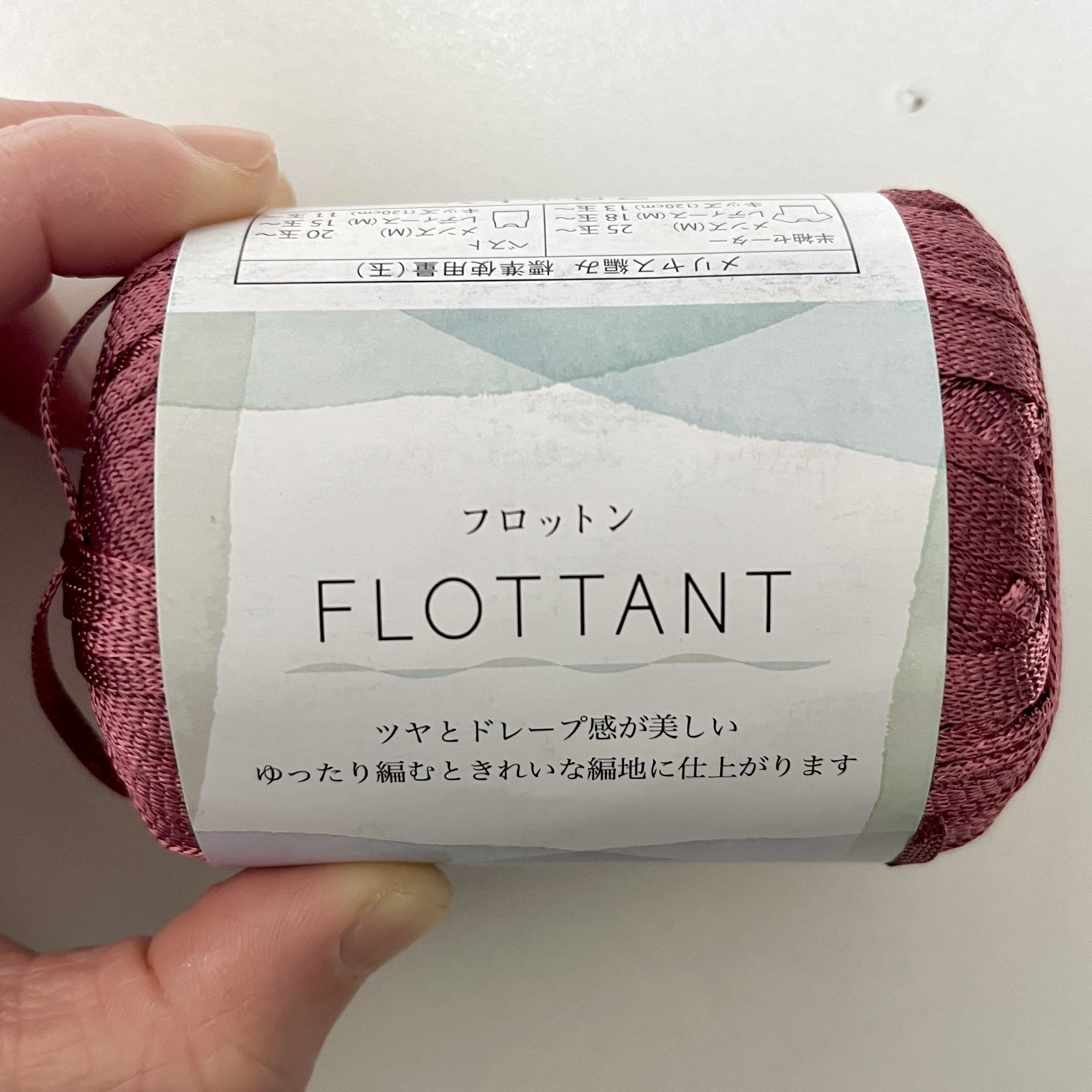 ツヤのある素材の毛糸(毛ではない気がしますが…)あったので、こちらで作ってみることに。