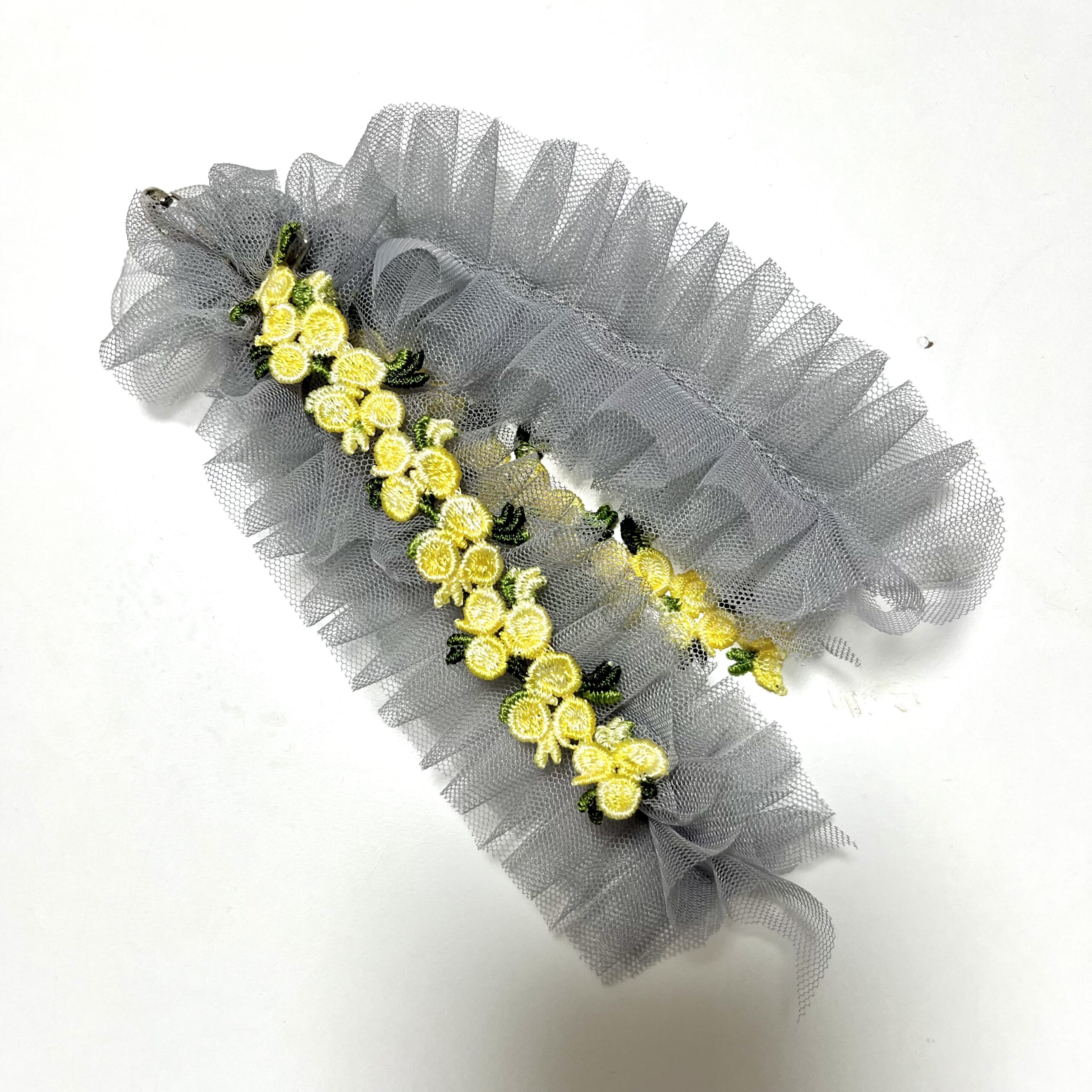 チュールが春っぽいなと思って作ってみました。半分の長さに切ってくるりんぱしただけです。