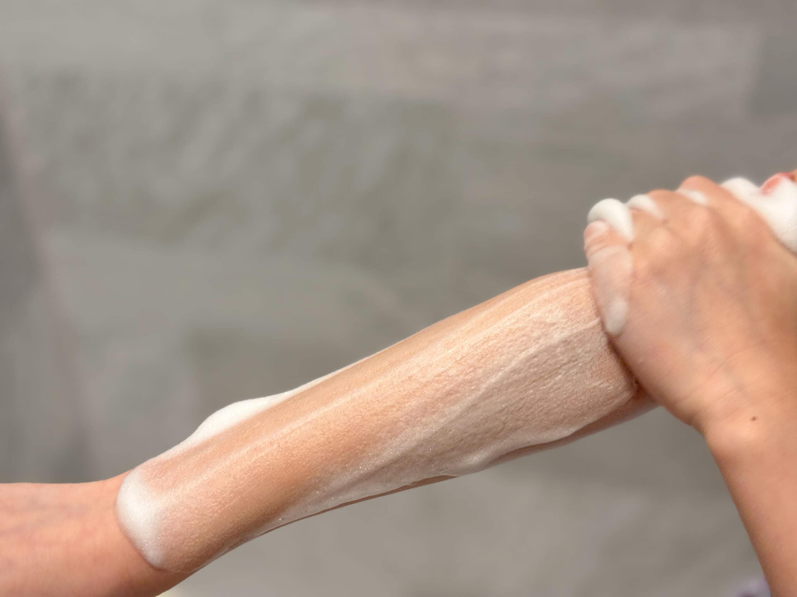 こちらは液体でトロッと出てきます。こちらも写真で伝わるでしょうか。とっても滑らかで、出てきた瞬間にふわっと「シトラス&ピュアサボン」の爽やかな香りが漂います。