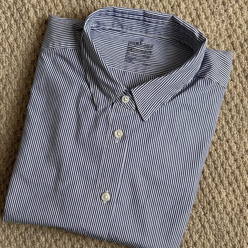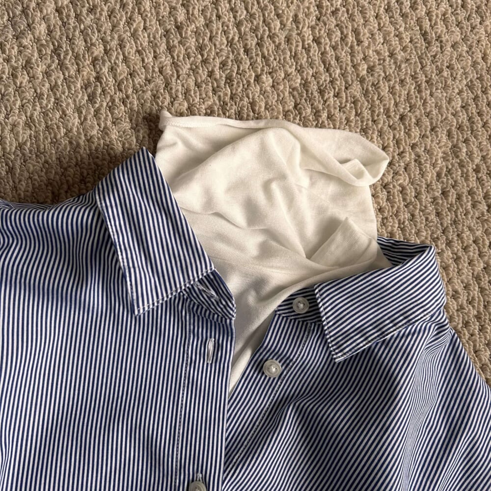 青といっても、イエベの私は淡い色より濃いめの色の方が顔写りが良いので、こちらのネイビーストライプにしました✨
