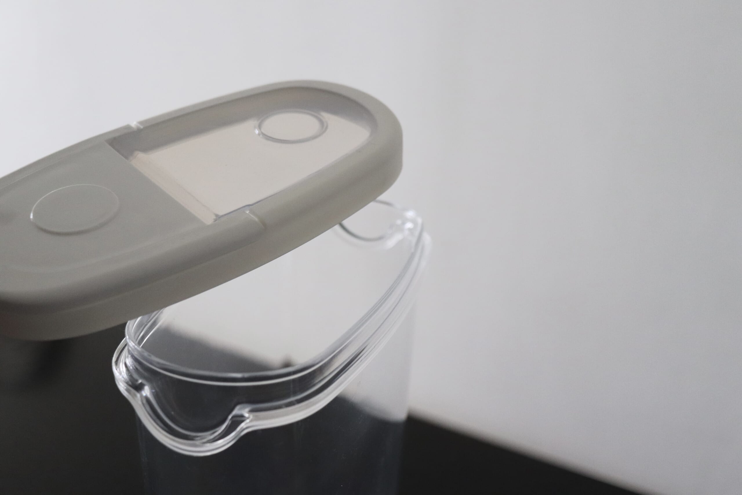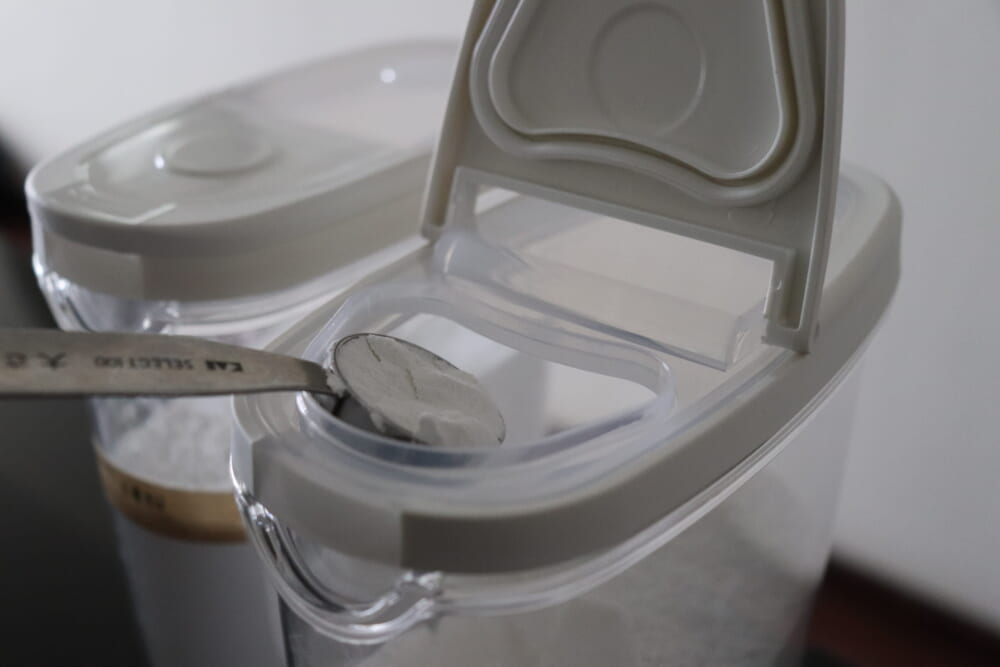 取り出し口は計量スプーンも楽に入りますが、大きすぎないので粉が舞うのも防止できます。