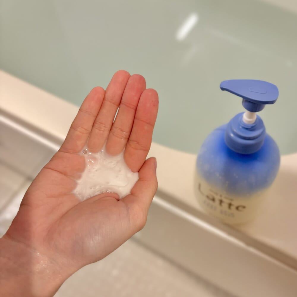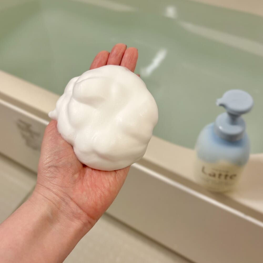 ホイップクリームのようなクリーミーでキメの細かい泡は、手に取るだけで気持ちよく、子どもも楽しんで洗えそう。モチモチの泡は肌をすーっと滑ってくれて、優しい洗い心地です。
