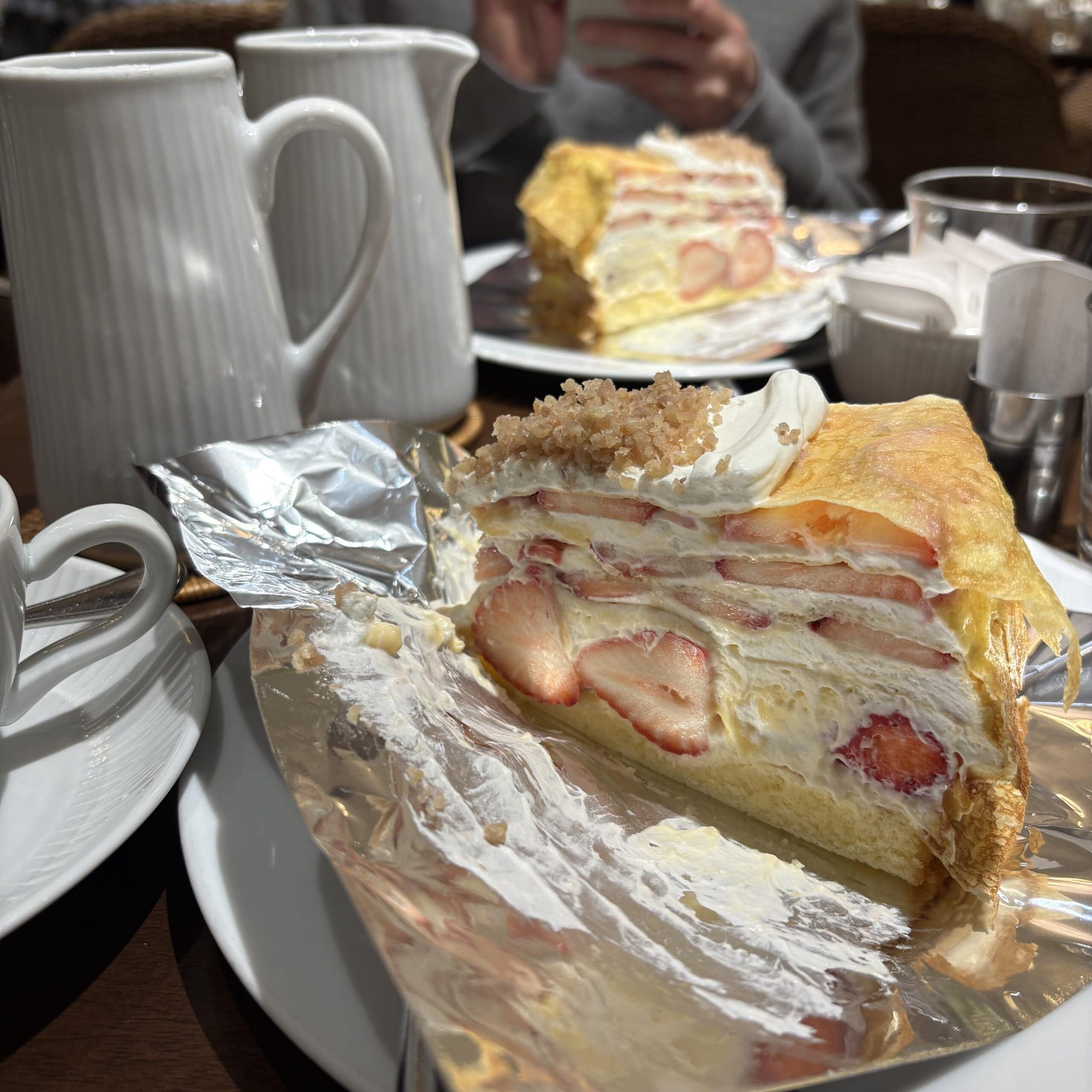 そちらのミルクレープが期間限定でフルーツが全てイチゴになると知り、それは食べに行かないと!といつもお付き合いしてくれるあさみんとお出かけ🤭
