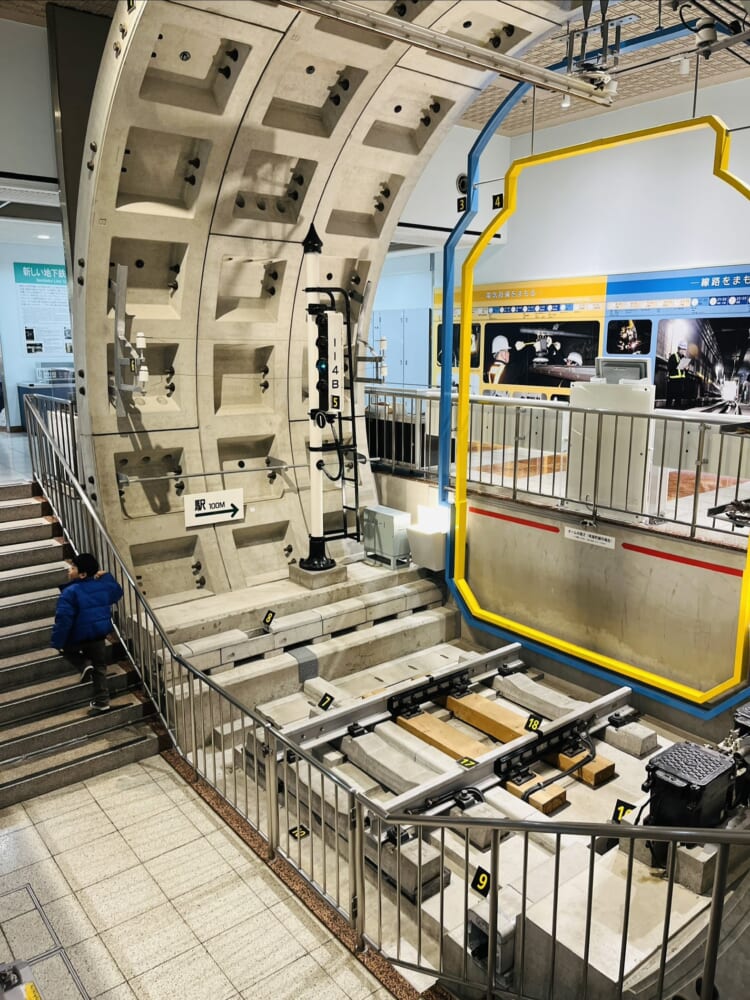 地下鉄ならではの見どころとして、トンネル掘削に関する資料エリアも。
