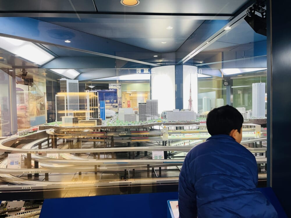 「ちかはく」にあるジオラマはスケールが大きく、お気に入りの車両を見つけてはキラキラした目で食い入るように見つめていました。