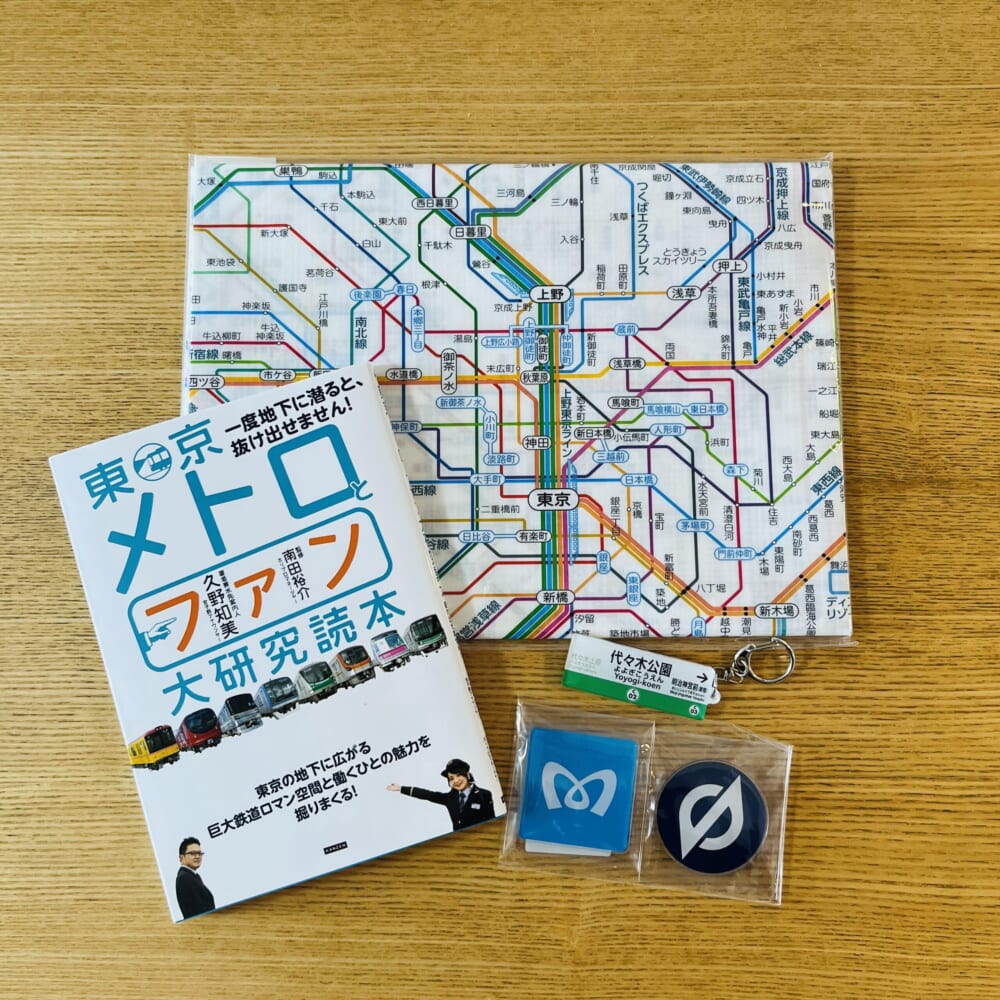 今回我が家が選んだのは、メトロマークのマグネット、路線図のレジャーシート、鉄道ファンの方が執筆されたメトロに関する書籍、そして駅名キーホルダー。
