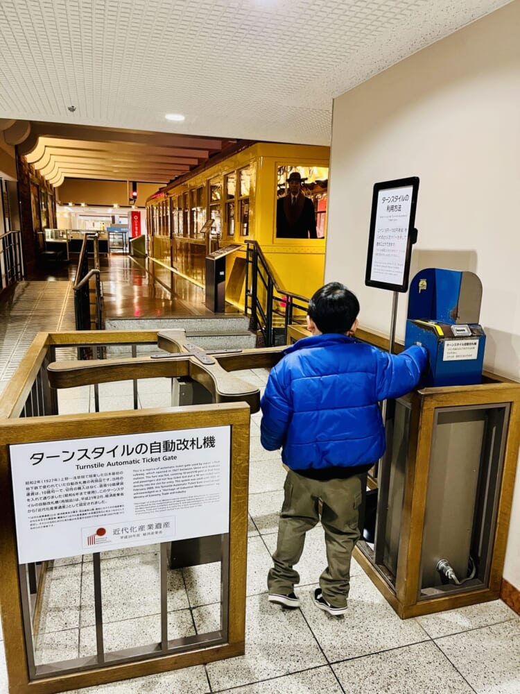 さらに、自動改札機よりも前に使われていたターンスタイル式の改札機にも遭遇!