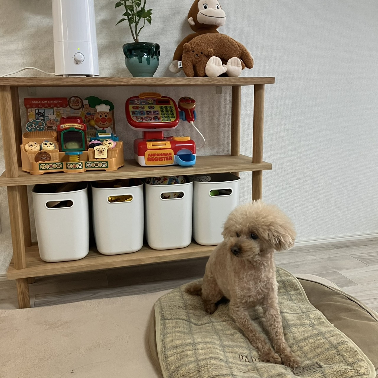 息子のおもちゃスペースが収拾が付かなくなってきていて、どうにかしたい。無印のスタッキングシェルフが気に入っているので買い足そうかとも思いましたが、もう少し軽く移動が気軽にできるものが良いかなと思っていたところ木製シェルフの情報を発見しました。