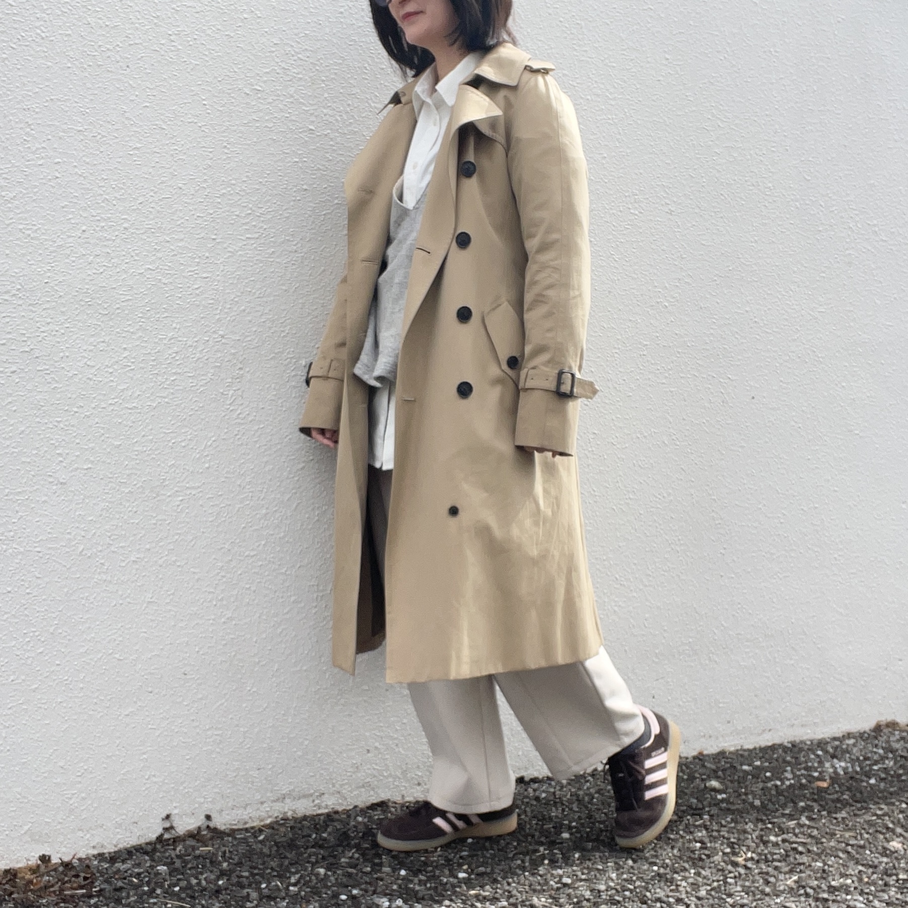 【通勤コーデ】トレンチコーデとアイボリーパンツに