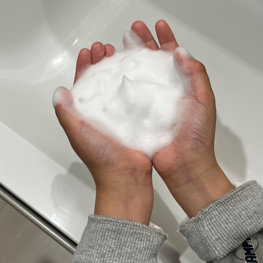 子どもの力でも簡単に、最初からしっかり泡立った状態で洗えるので、「泡立て不足でベタつきが残る」という心配がありません。