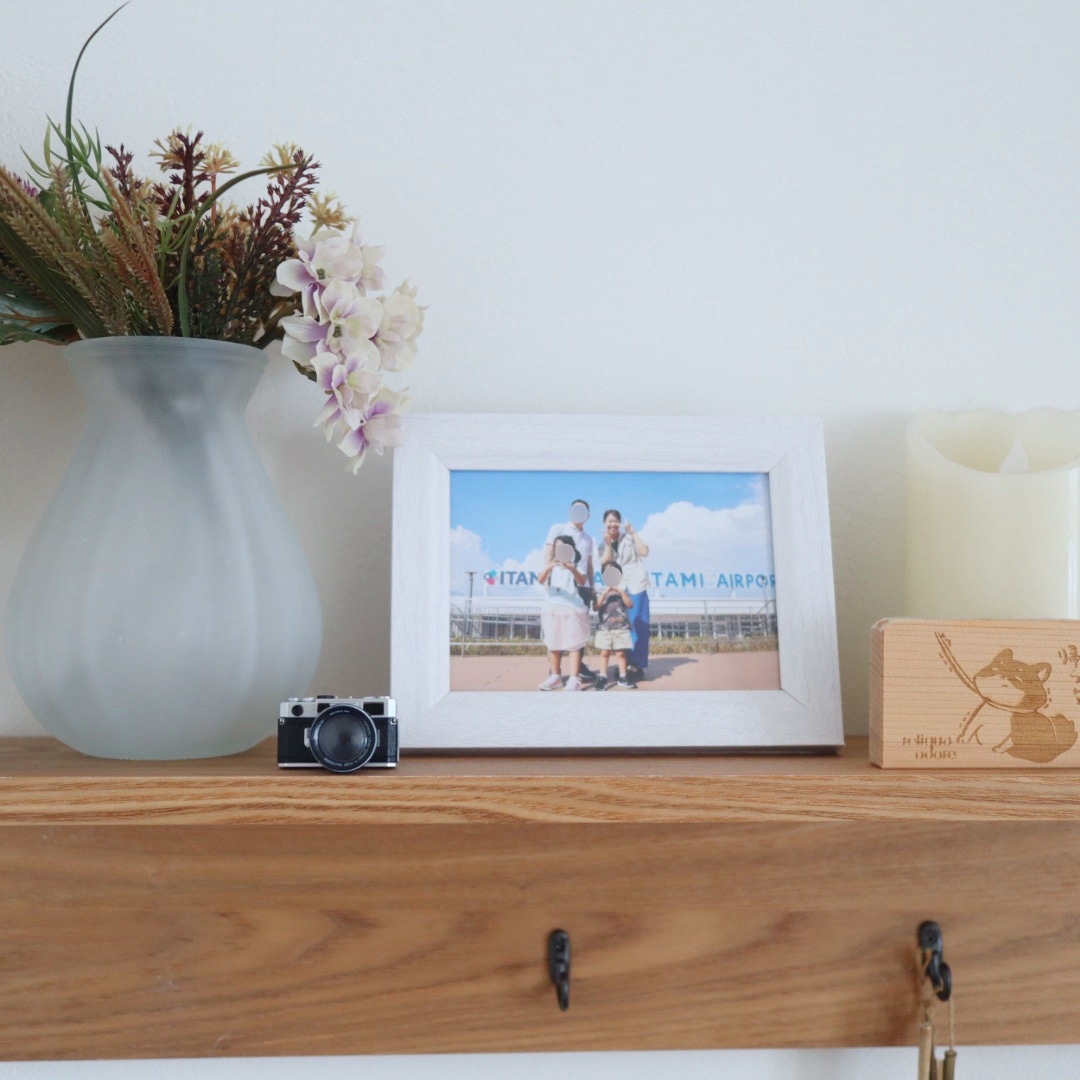お気に入りの家族写真と一緒に飾ってみました。