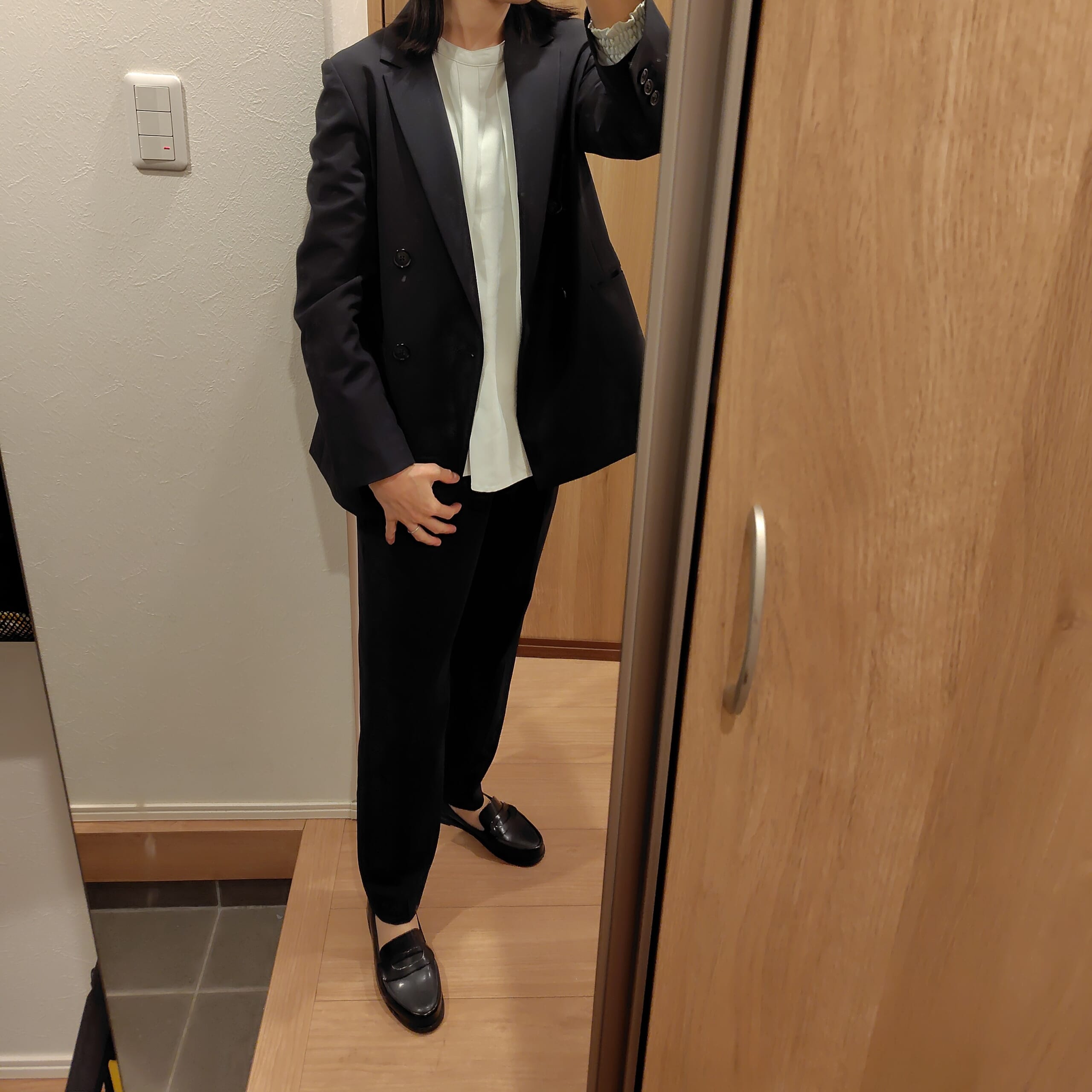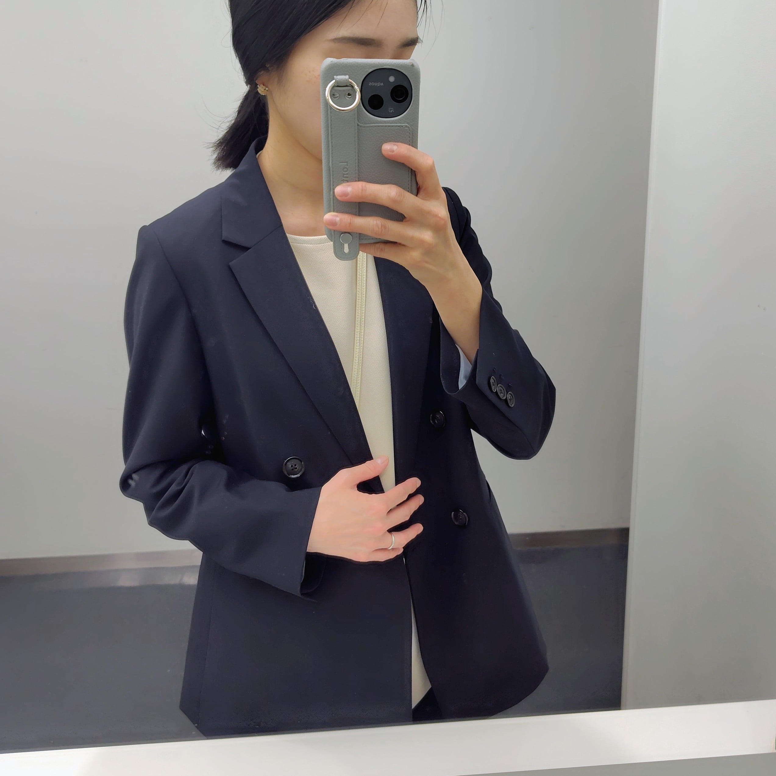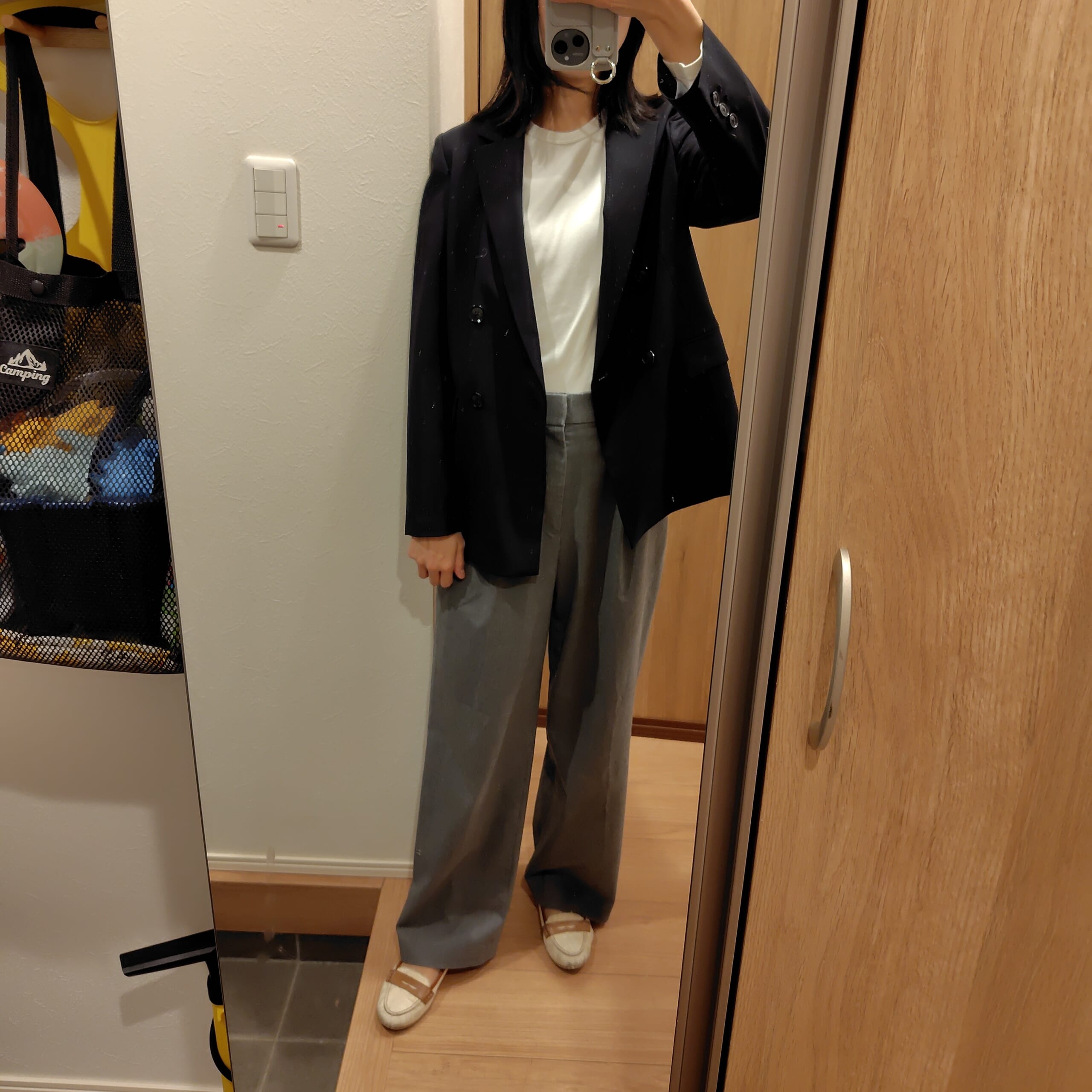 ダブルジャケットって堅くなりすぎる印象があったけど、これはむしろ今っぽくておしゃれ見えします。