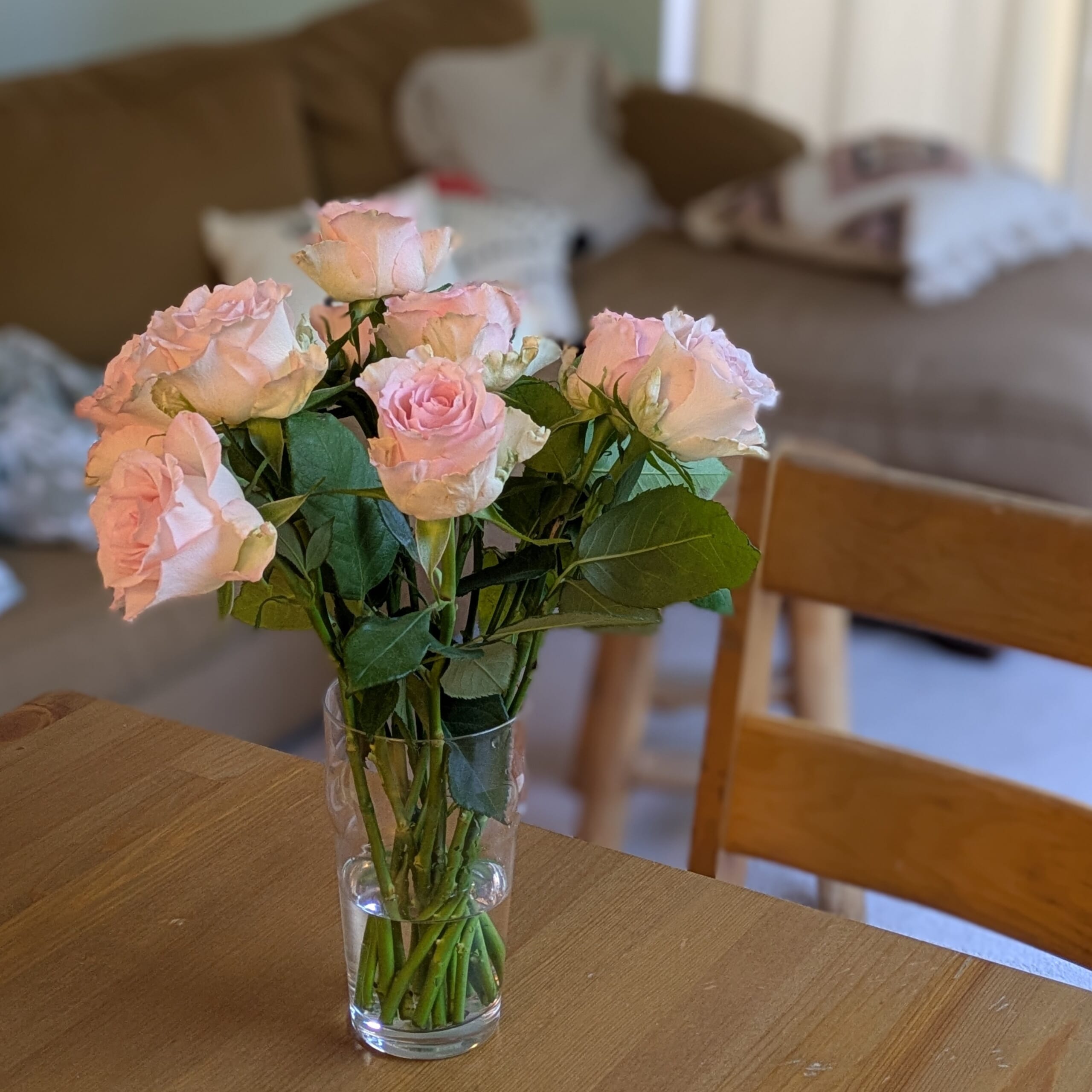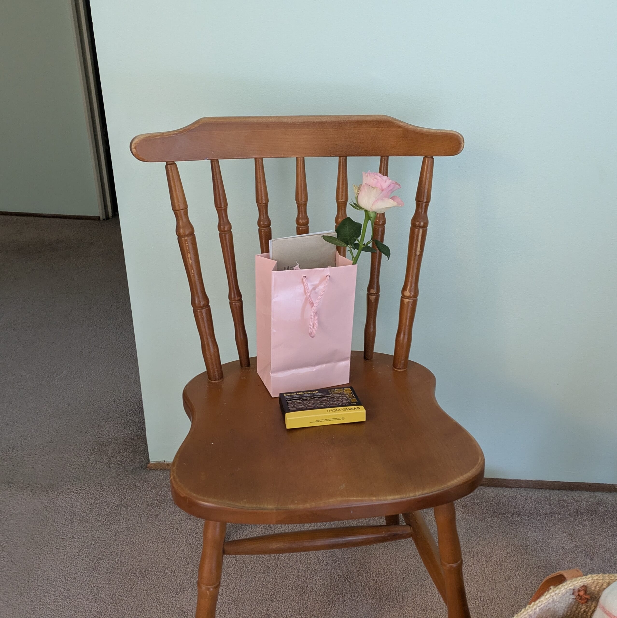 もう一つのピンクの袋は、急遽お渡しものがあって会うことになった友人へのもの。ちょうど我が家にピンクのバラを飾ったところだったので、そちらも1本添えてみました。