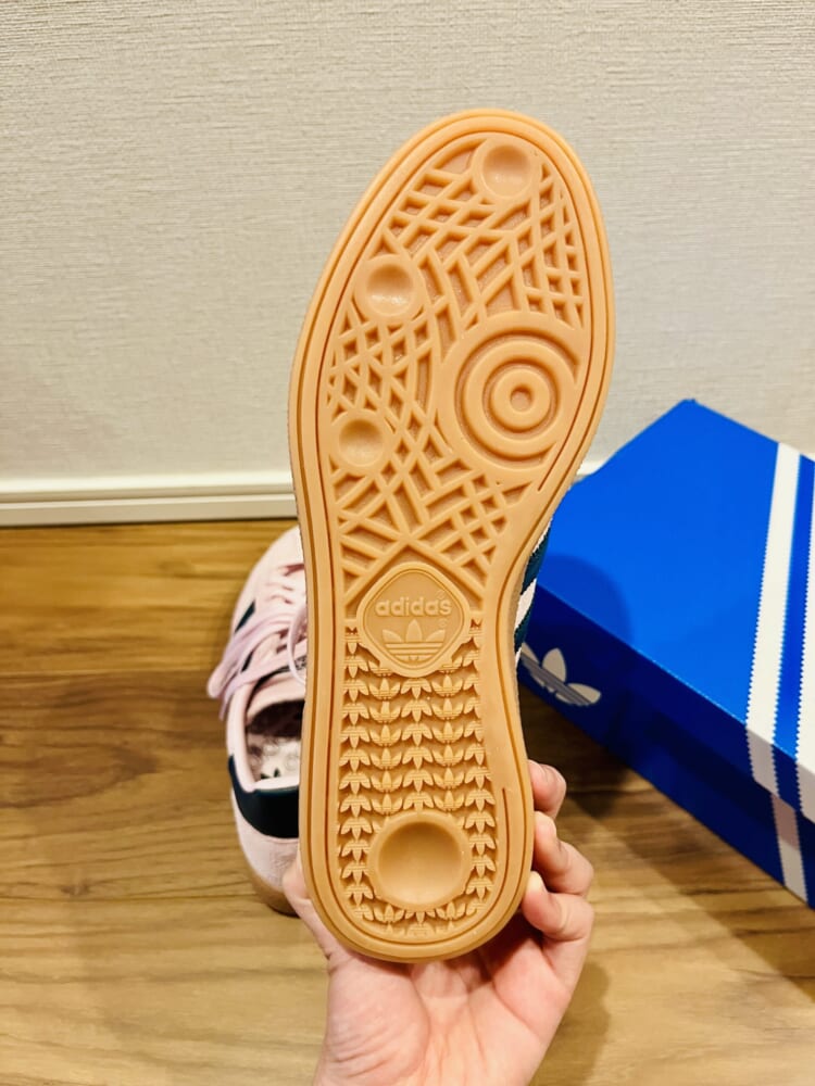 ソールはほどよく厚みがあり、しっかりとした安定感。adidasのSAMBAと比べると、こちらのほうが少しクッション性があるように感じました。