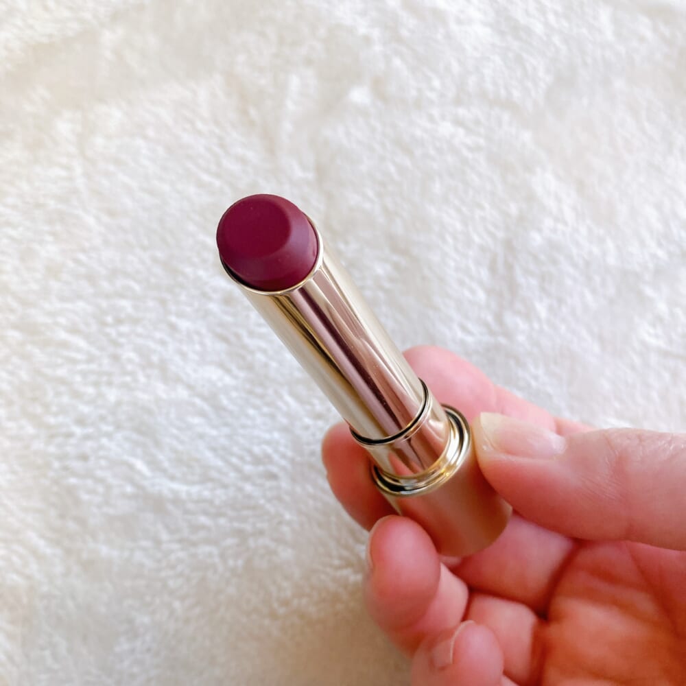 少し青みのあるピンクだったので、イエベの私に似合うか心配だったのですが、意外と違和感なくすっきり見え、むしろいつもと違う印象が新鮮に感じられました。上品な印象で、習い事の付き添いや保護者の集まりなどにもよさそう。なじみカラーの 03 シャイハート を愛用しており、少し違う雰囲気のものが欲しかったのでこちらにしました。