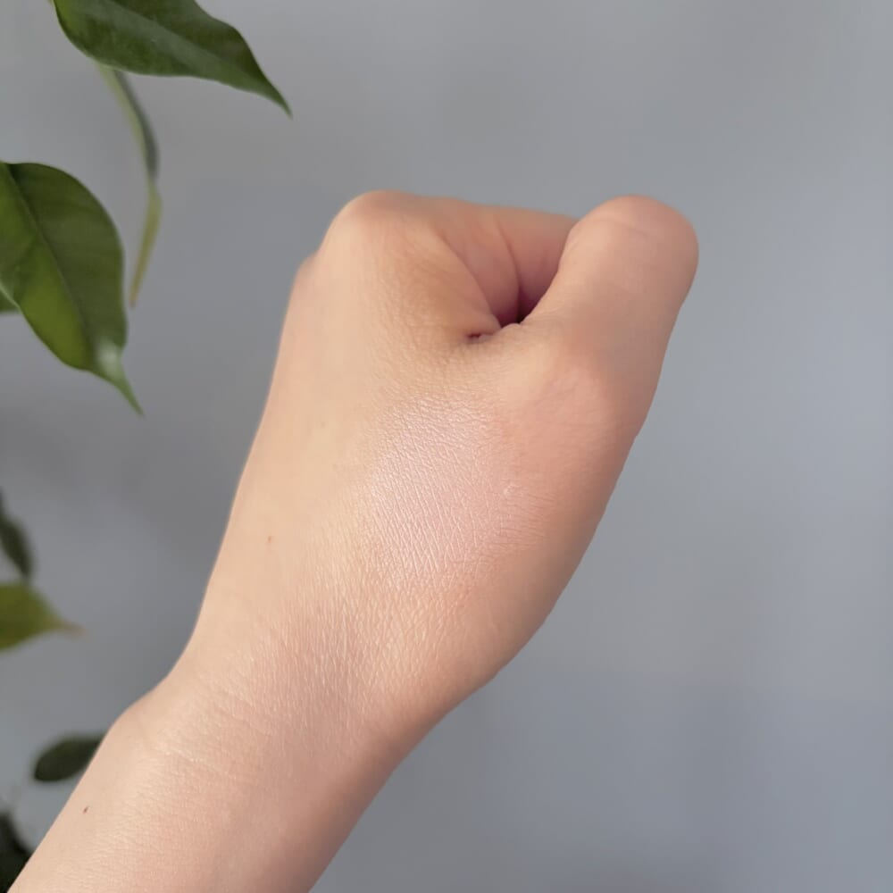形状はクリームですが、しっかりとしたテクスチャーで、肌にピタッと密着する感じ。