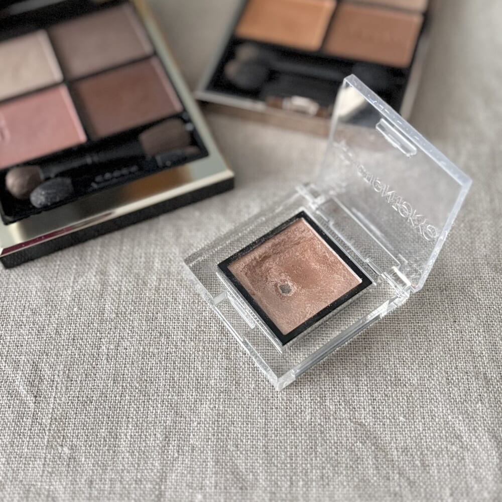 とくに「SUQQU」のパレットは、発色がとても良いので、よっぽど調整しないと色が強く出すぎてしまい、目元の形状が奥深い私にとっては難しいアイテムです。使いこなすには、上級テクが必要。