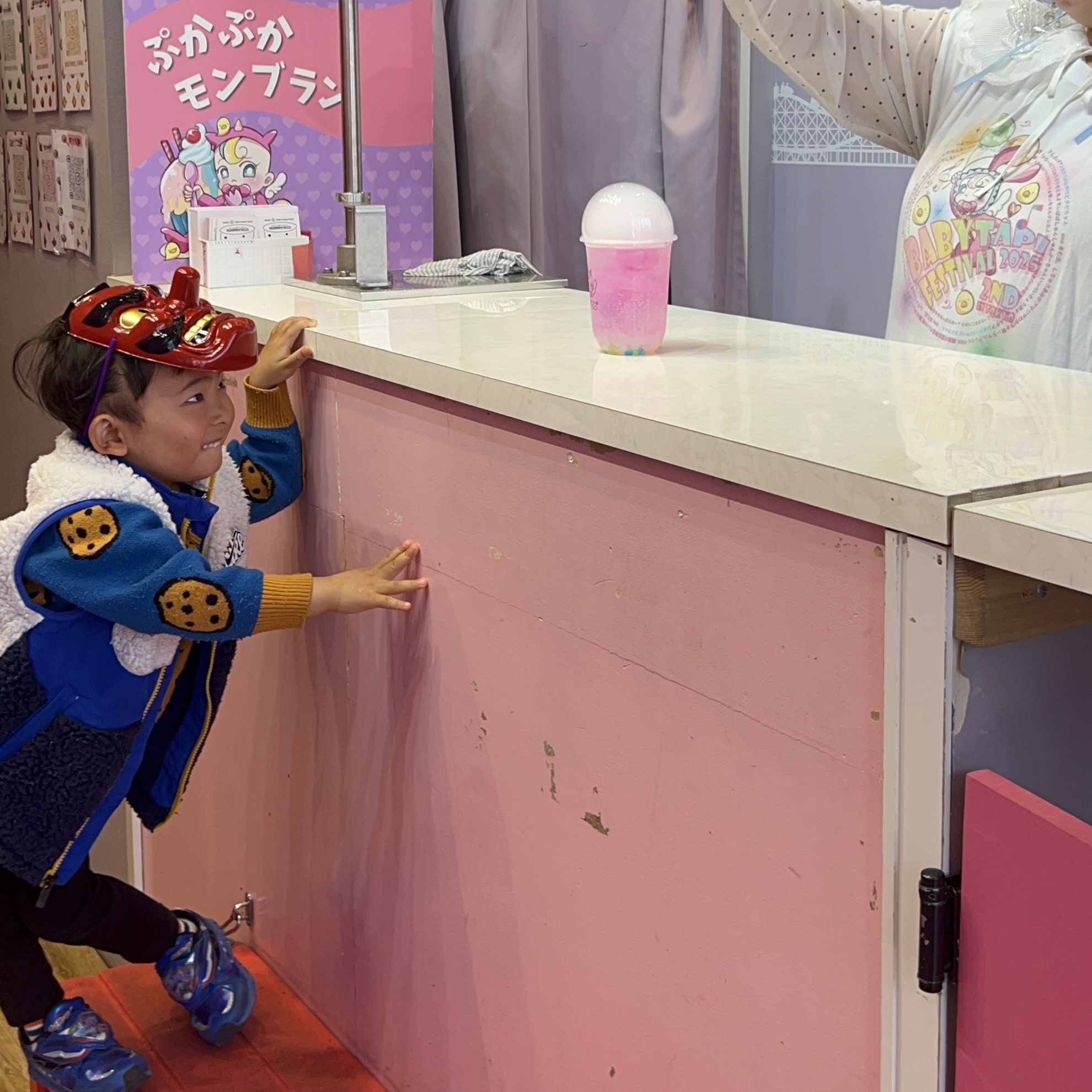 ベビタピは12:00〜入店可能だったので、お昼ご飯のお店に向かいながら竹下通りをお散歩していたら、いきなり長男が「わぁぁぁぁぁぁぁぁ!ママ!ママ!」と大興奮!しなこちゃんでもいましたか!?騒ぎをしていたのですが、目線の先には大好きな⋯
