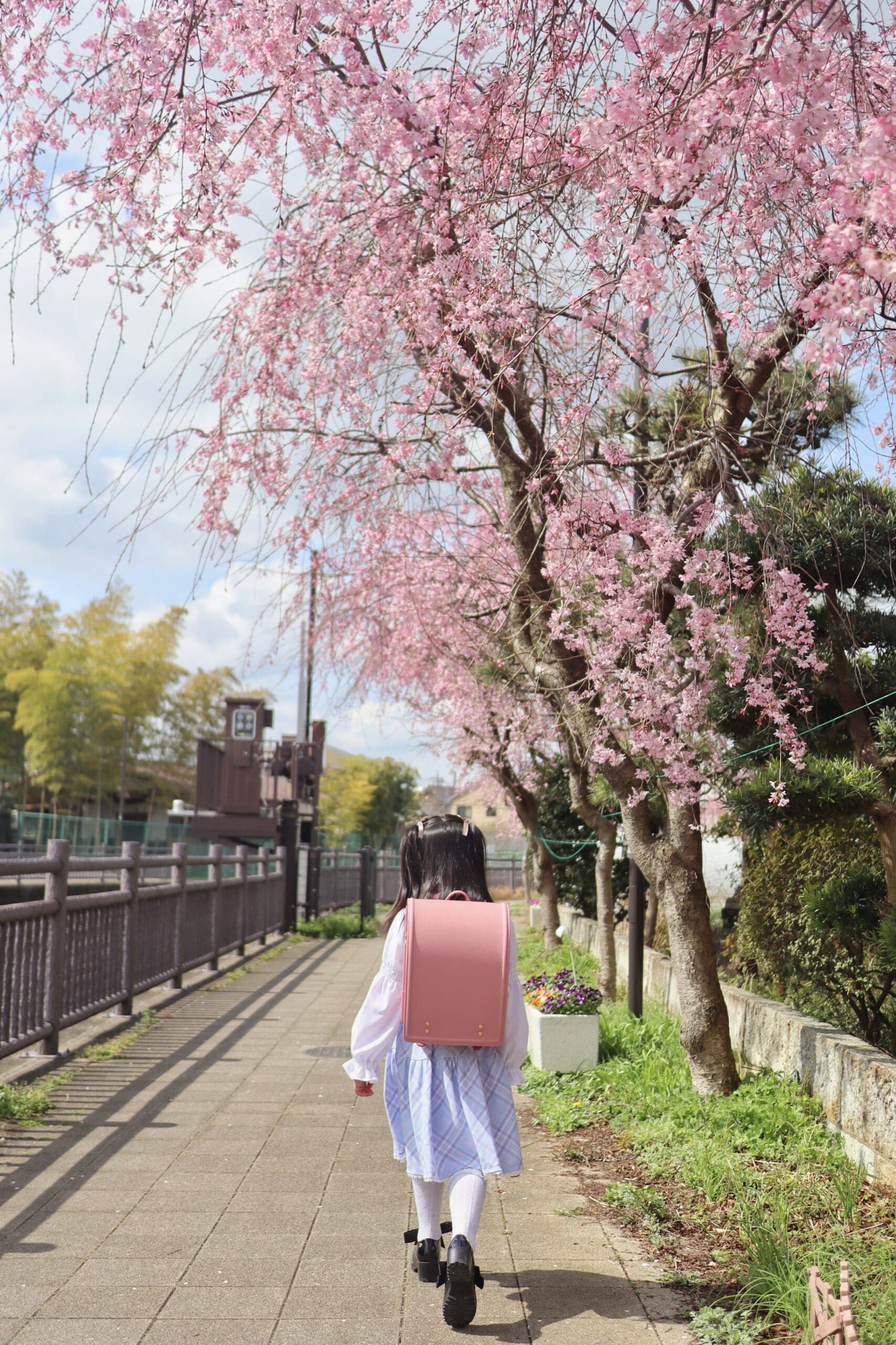 桜とランドセルのセルフ記念撮影をしてきたので、思い出として載せたいと思います。