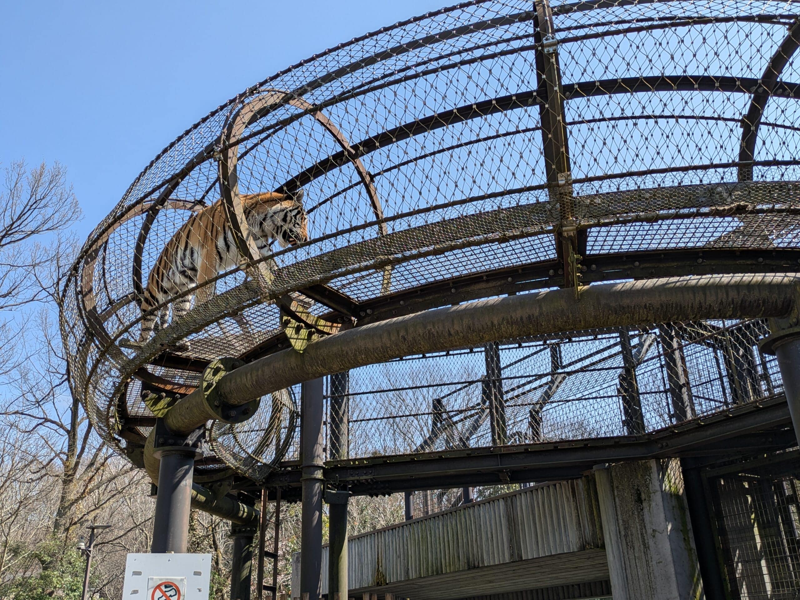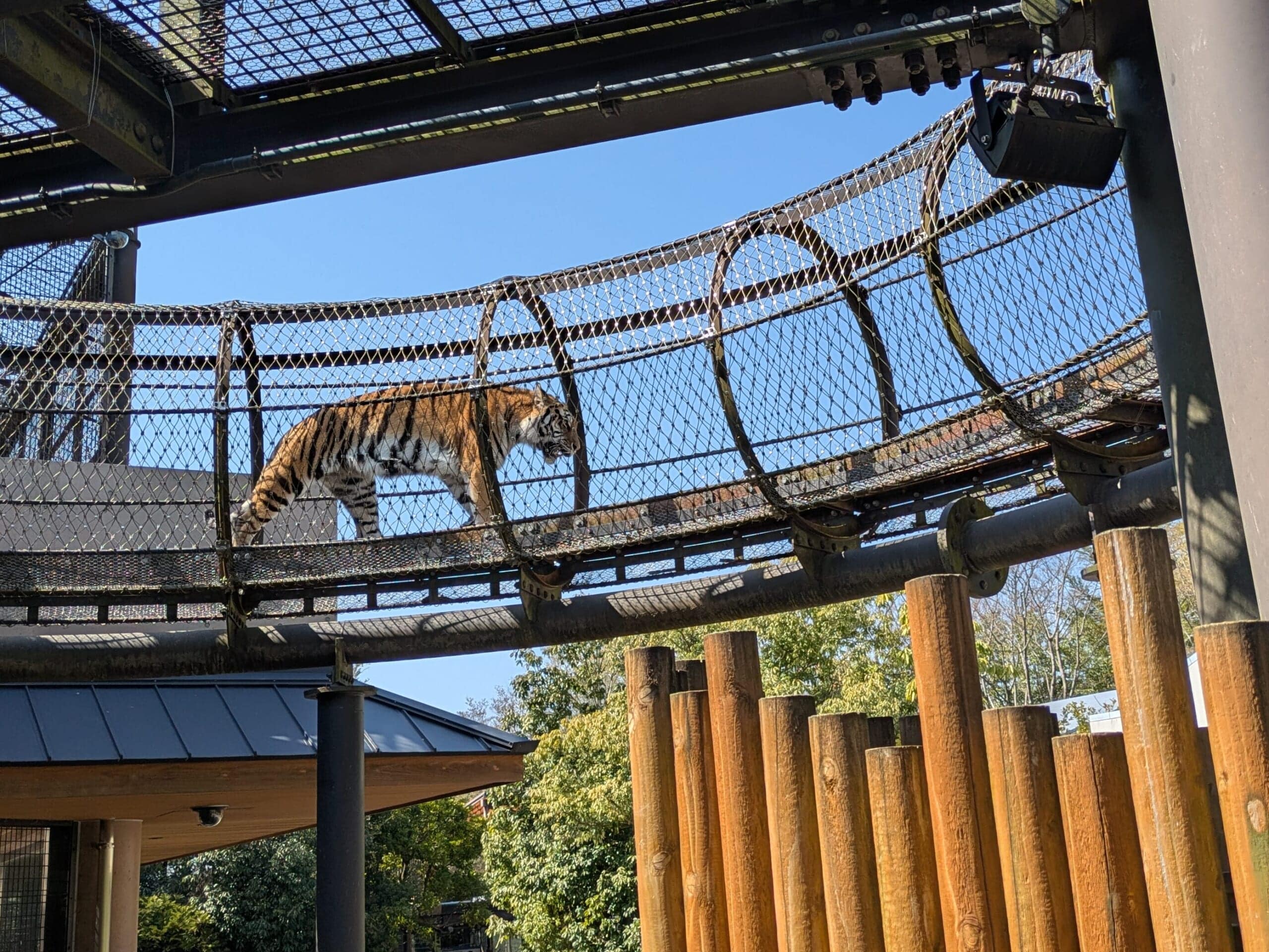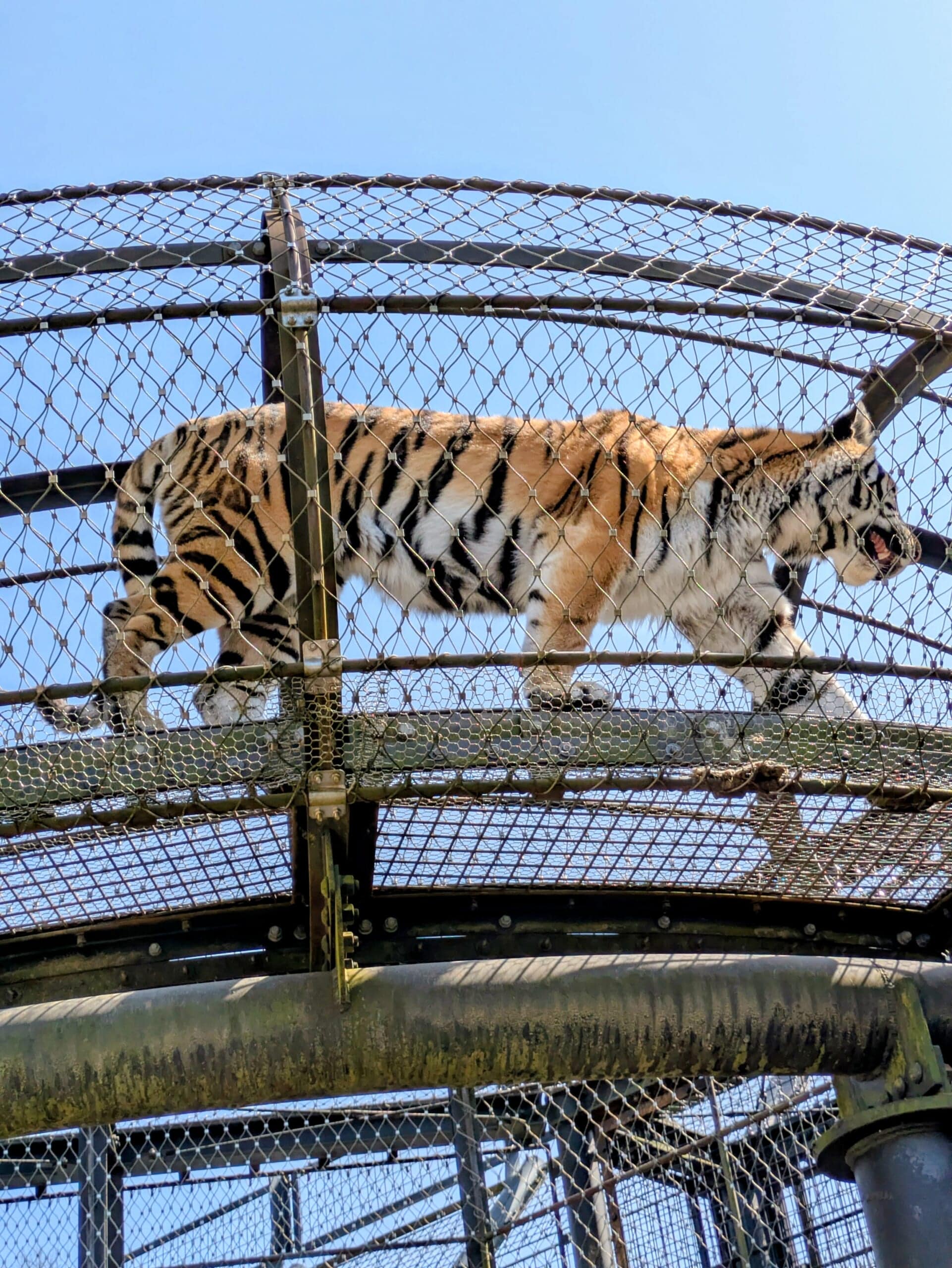 トラが高いトンネルを歩くので、下から間近に大迫力で見ることができます