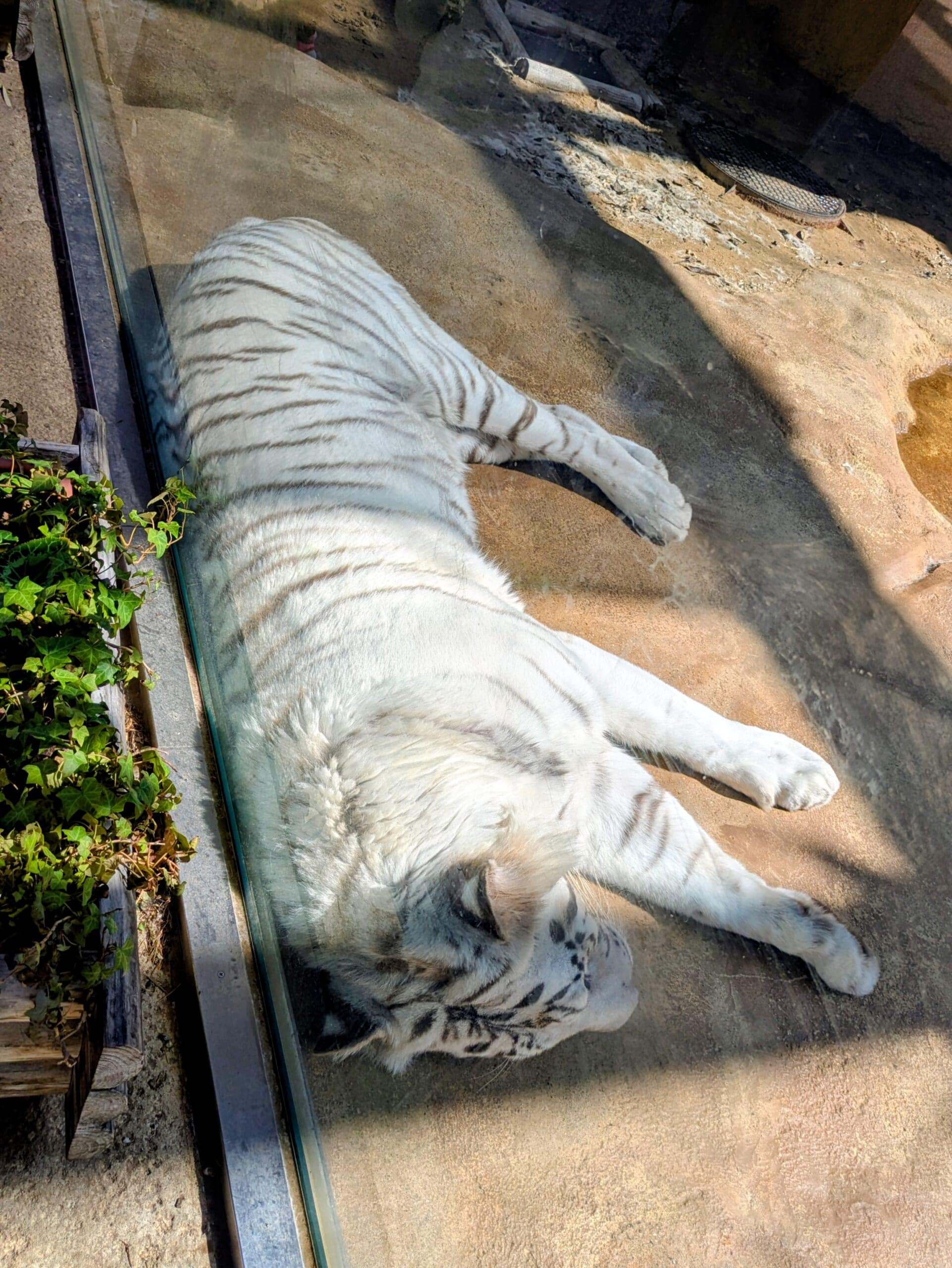 展示ガラスギリギリの場所で寝ていたので、至近距離で寝ているホワイトタイガーを見ることができました