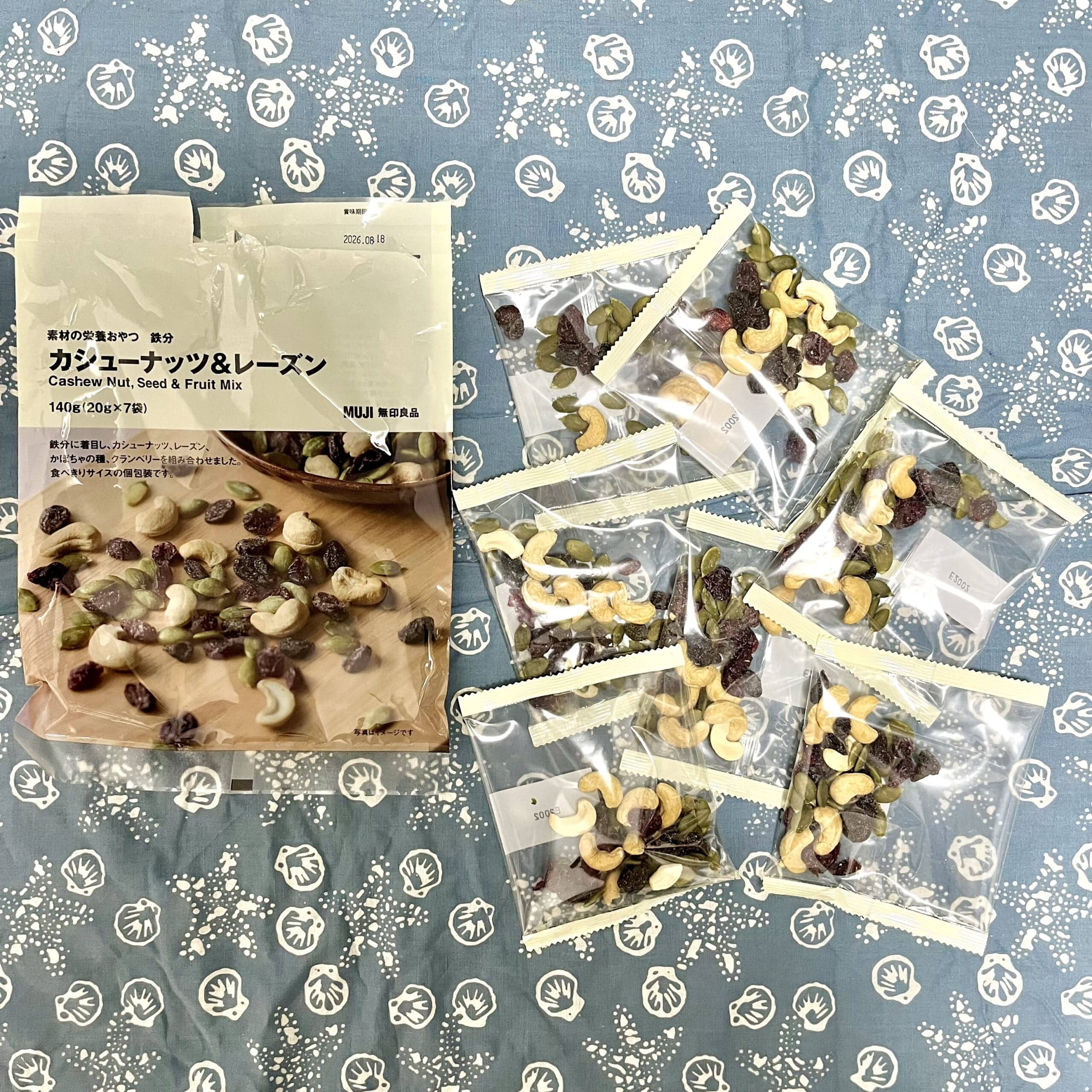 ほかにも「たんぱく質」「ポリフェノール」「食物繊維」「カルシウム」などの組み合わせがあります。こちらも個包装なので、食べ過ぎ防止になる…かと思いきや、クランベリーとかぼちゃの種のおいしいこと!あまり個包装の意味はなかったかもしれません…。