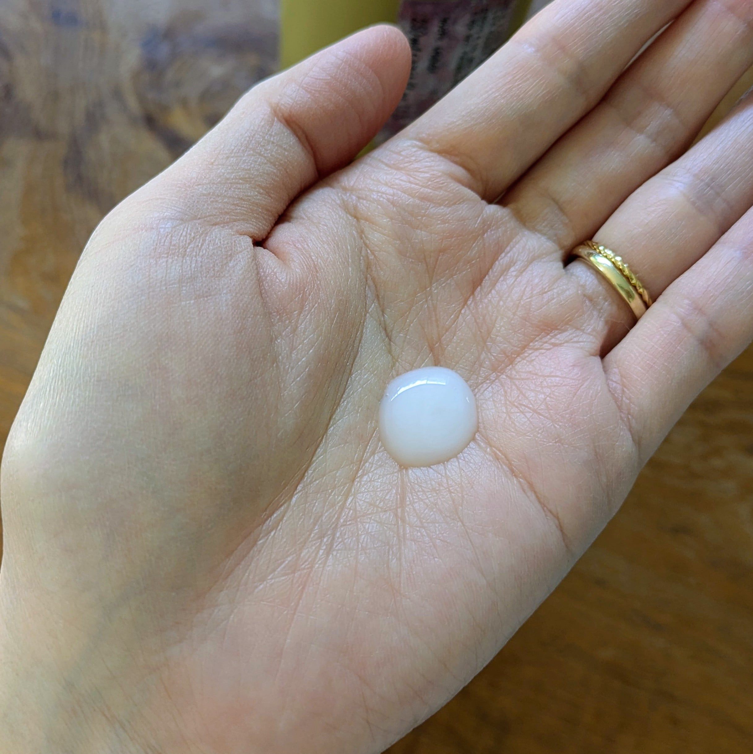 クリームを手のひらに伸ばして、毛先にクシュクシュっと馴染ませました。