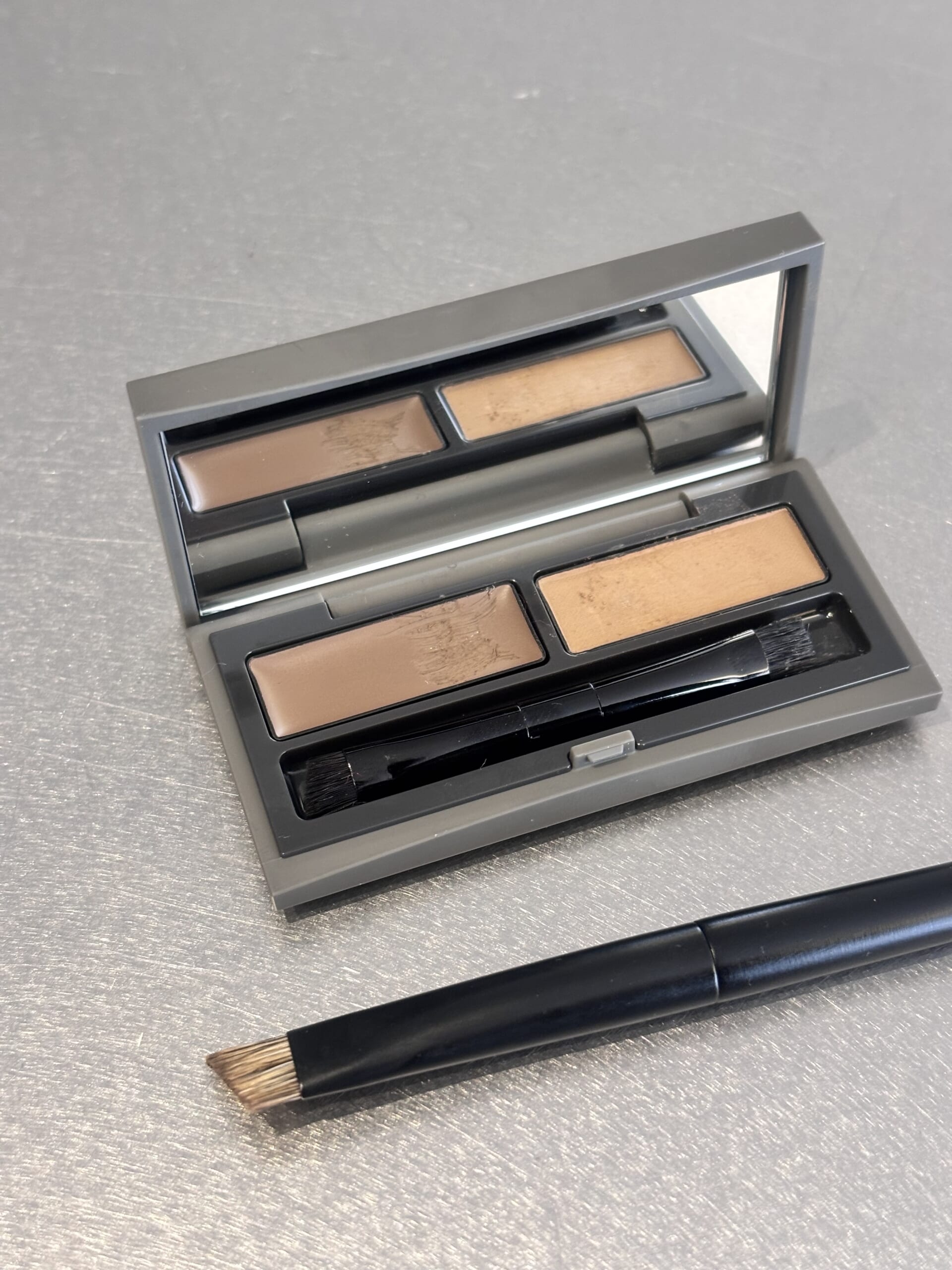 こちらも何度もリピートしているアイブロウ。左のクリームで眉毛がない部分を埋めて右のパウダーでふんわりと仕上げています。ナチュラルなブラウンで合わせやすく万能なアイブロウです。ヘアカラーが黒髪、自然な茶色の方に合う色味です。今回は筆も一緒に購入しました。