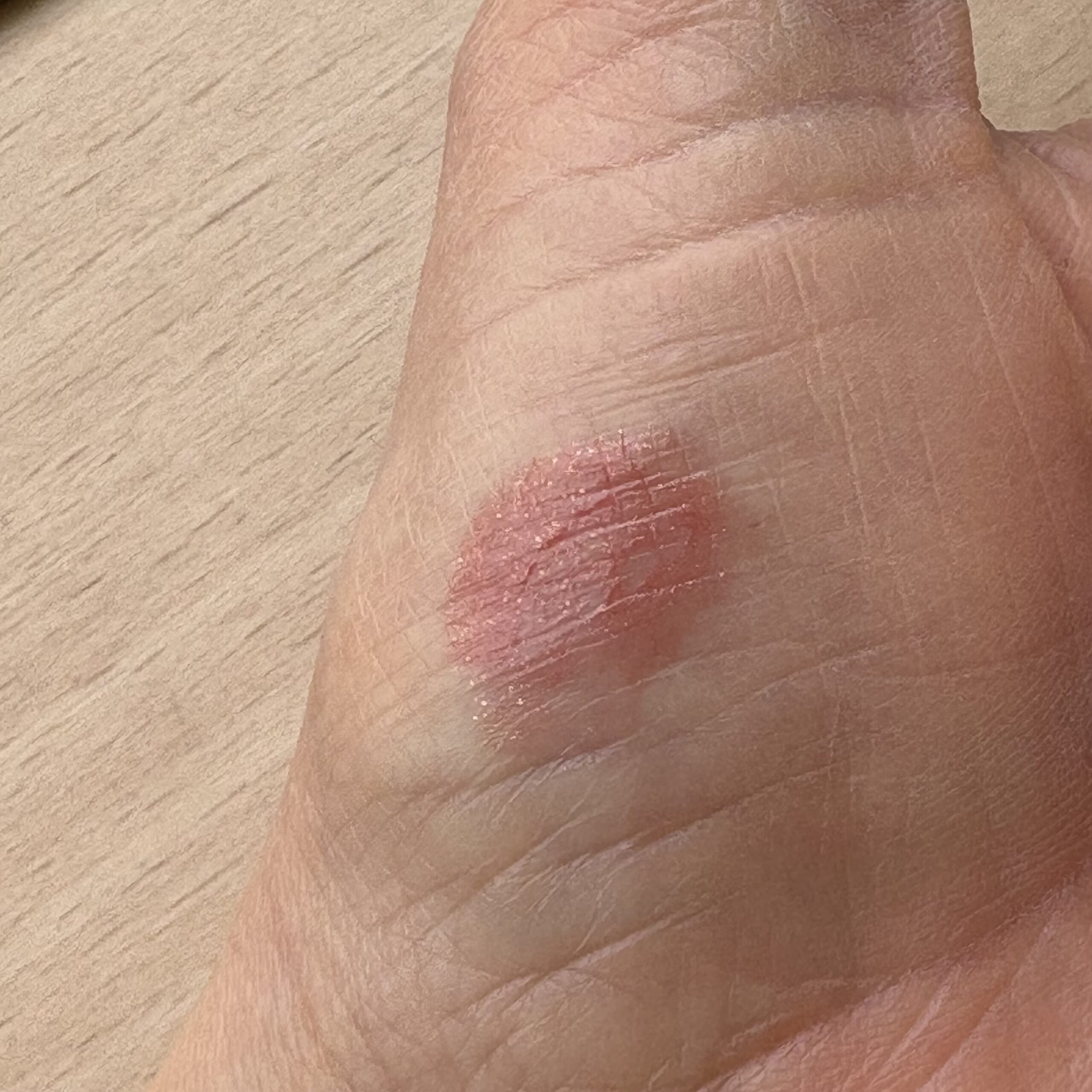 塗る前に見た色は濃く見えますが、塗るとシアー発色のためほんのり血色が良くなるかな?ぐらいなので、とっても使いやすい色だと思いました。