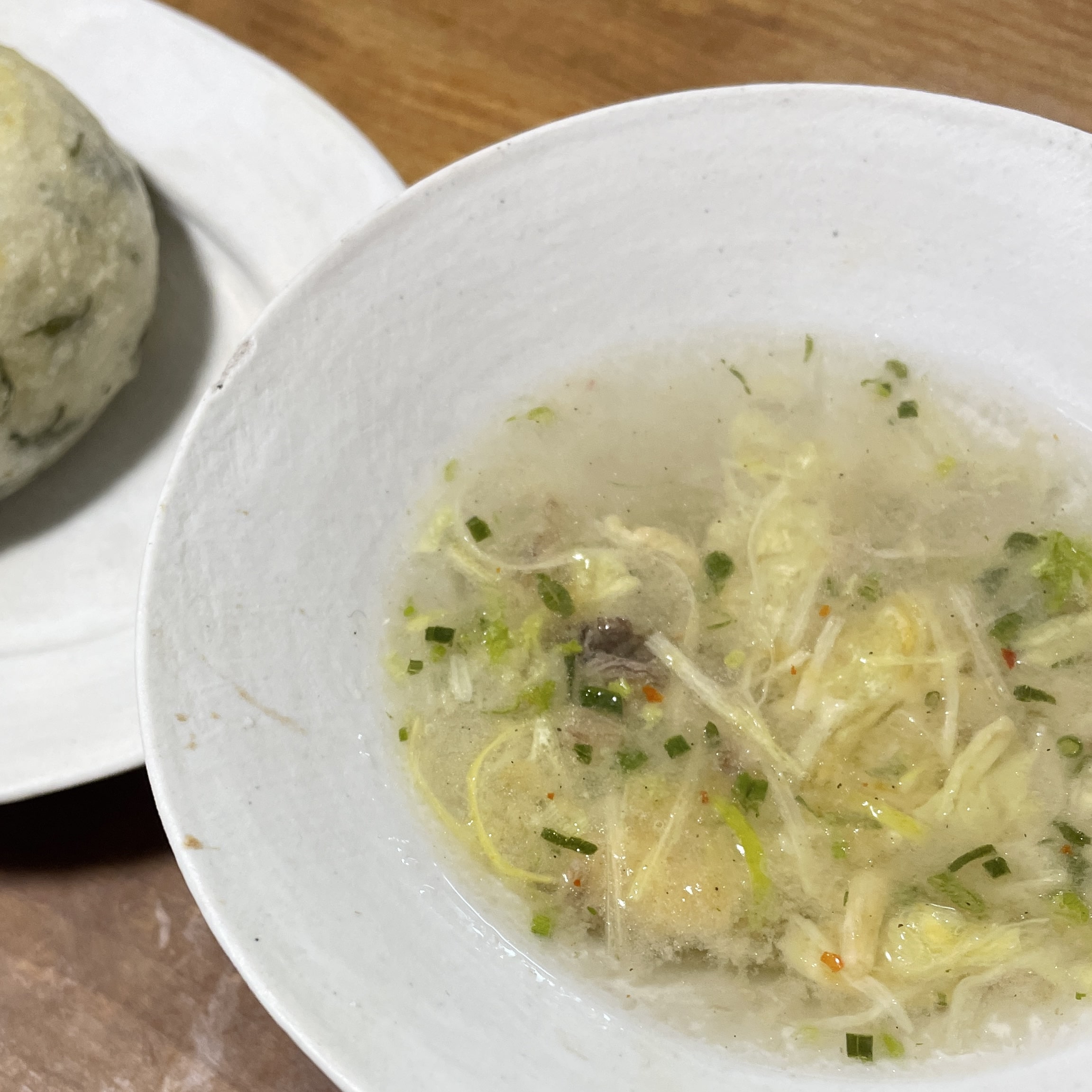 少しトロミのあるスープに、牛の出汁と葱がからみあって、深い味わいのスープ。おにぎりとも相性ばっちり。