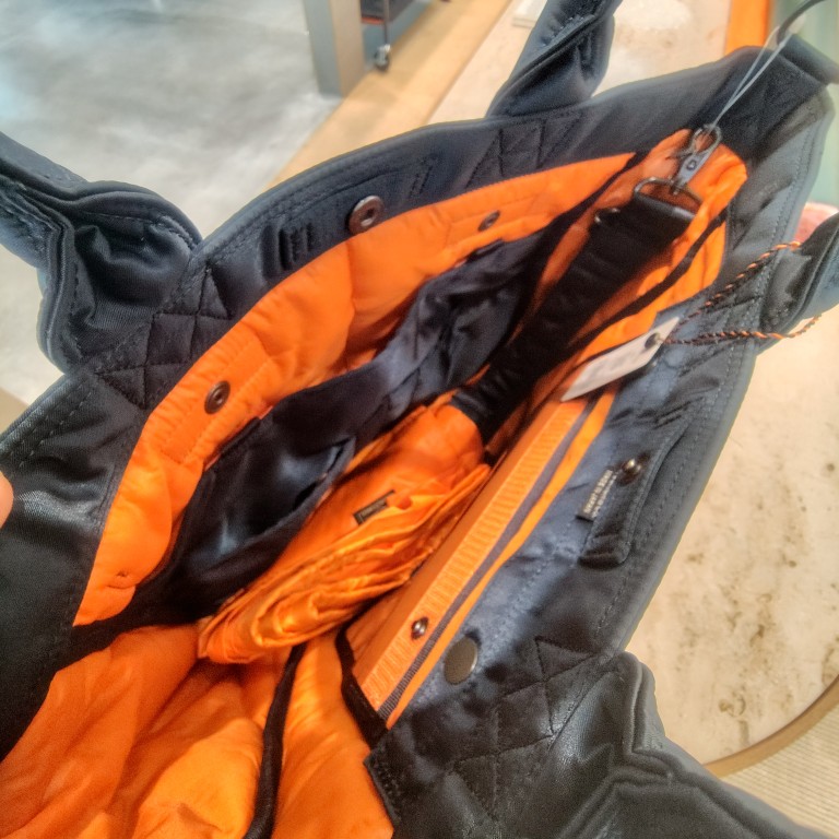 TANKERシリーズ全般、黒は金具がシルバー、アイアンブルーは、ゴールドだった気がするのです。華やかなゴールドが大人っぽくて素敵なのですが、息子は何かと目立たないほうが好きなもので。それもこのバッグは、見えるところにファスナー金具等ないので、ネイビー1色に見えるのも好きなポイントでした♪