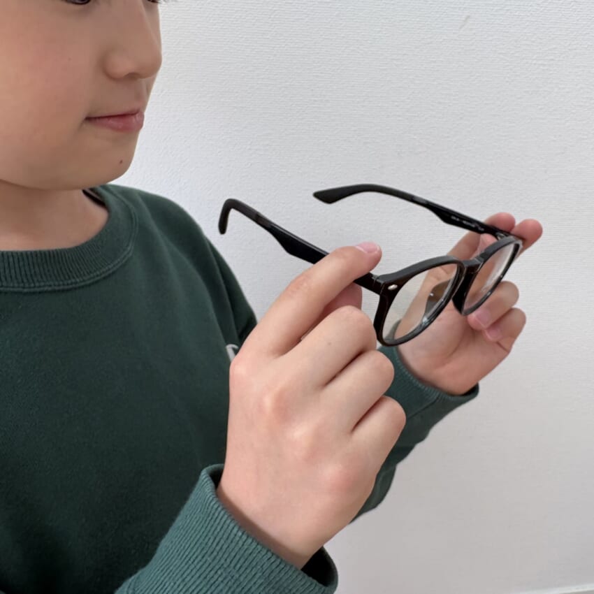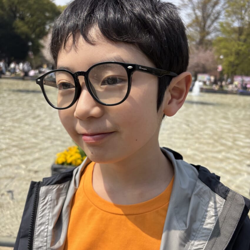 息子がかけてみたところ、フレームの形が丸みを帯びているタイプなので柔らかい印象になり、かけるだけで垢抜け、なんだか知的さも感じられます…!