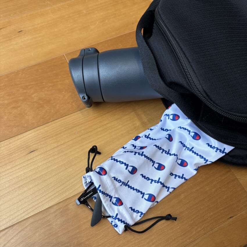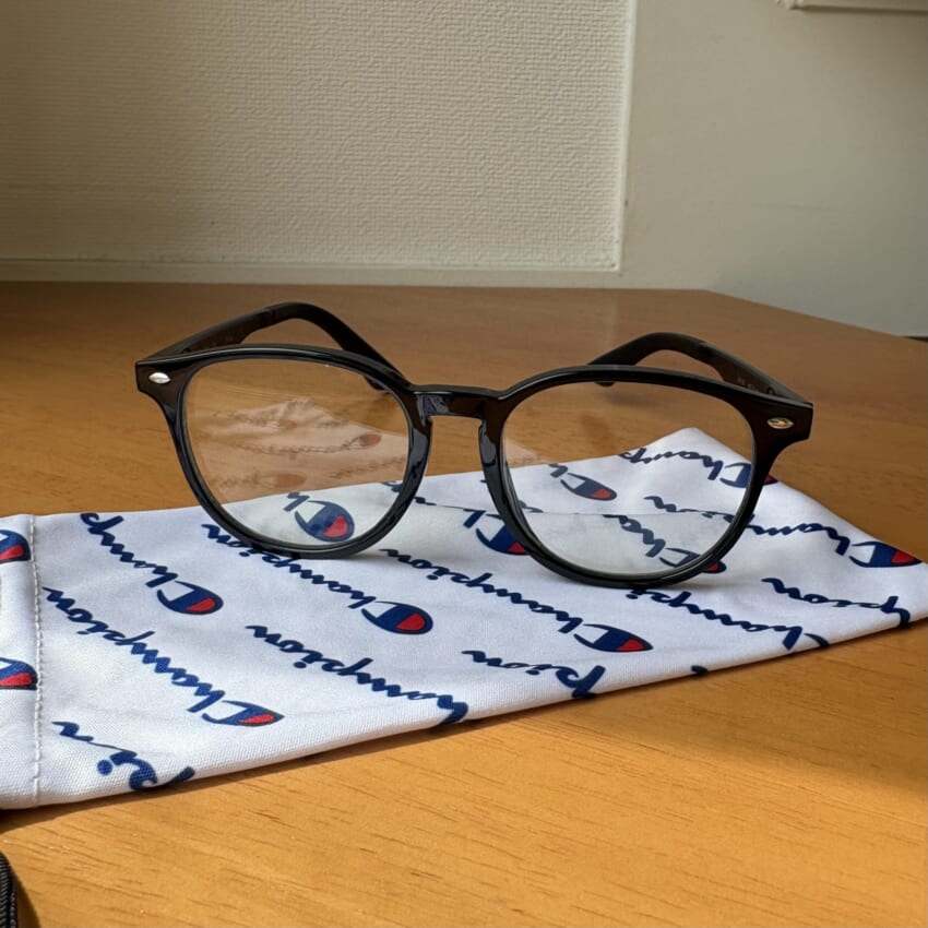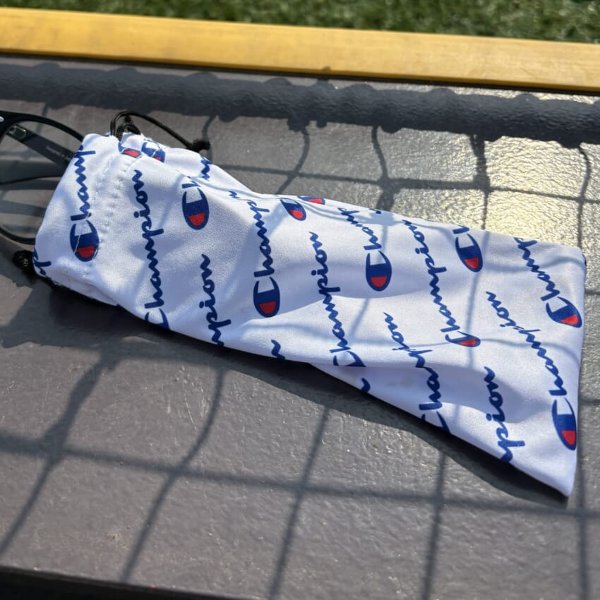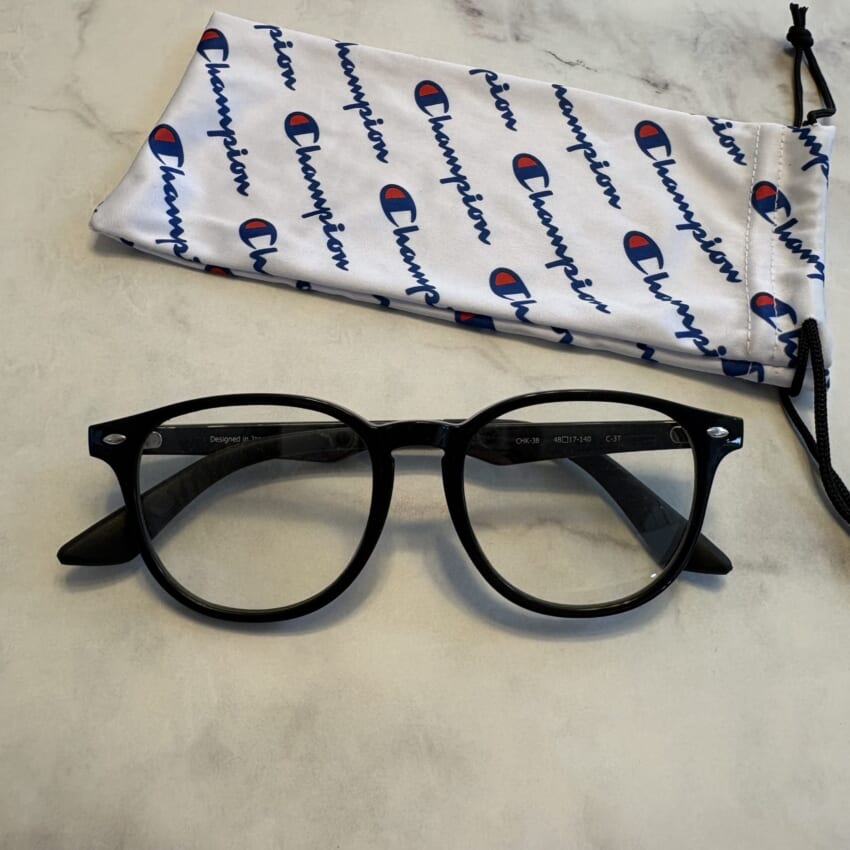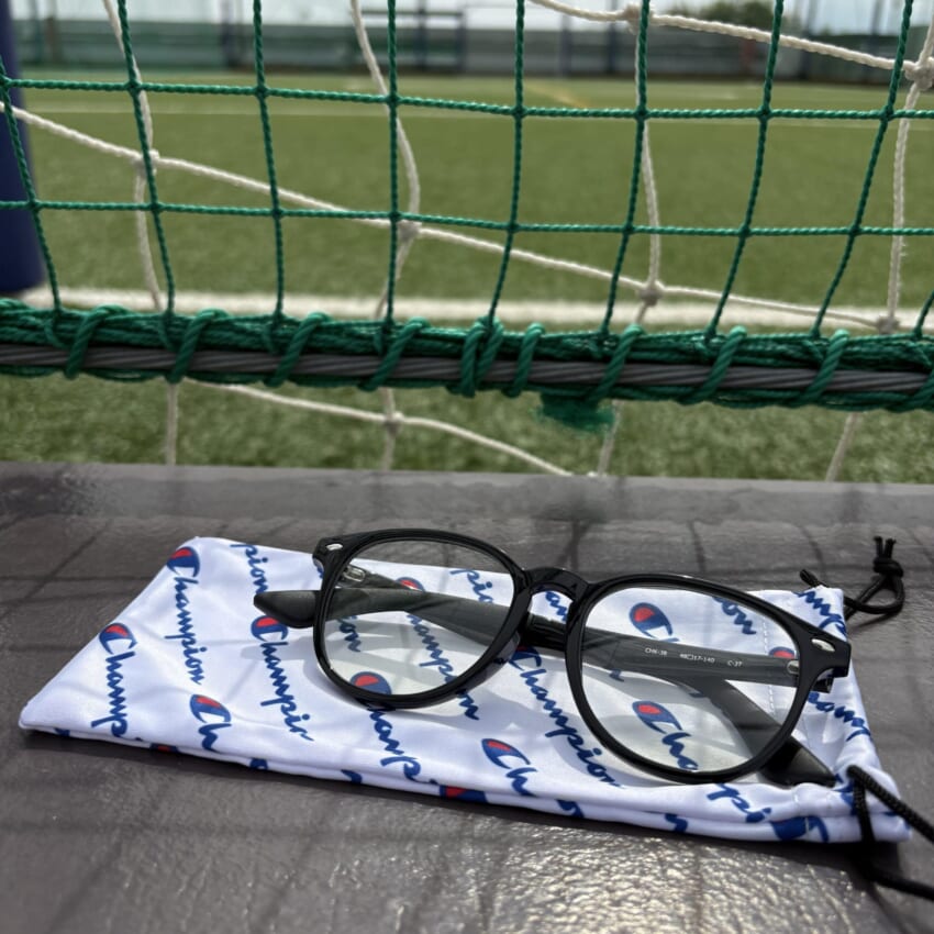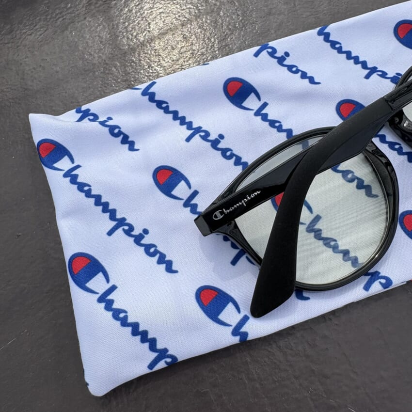また布製のメガネケースにも、Championのロゴがプリントされています。