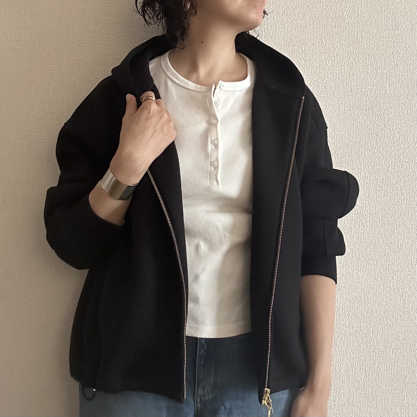 着てみると丈がやや短めで、インしなくてもバランスが取りやすいのがうれしいポイント。
