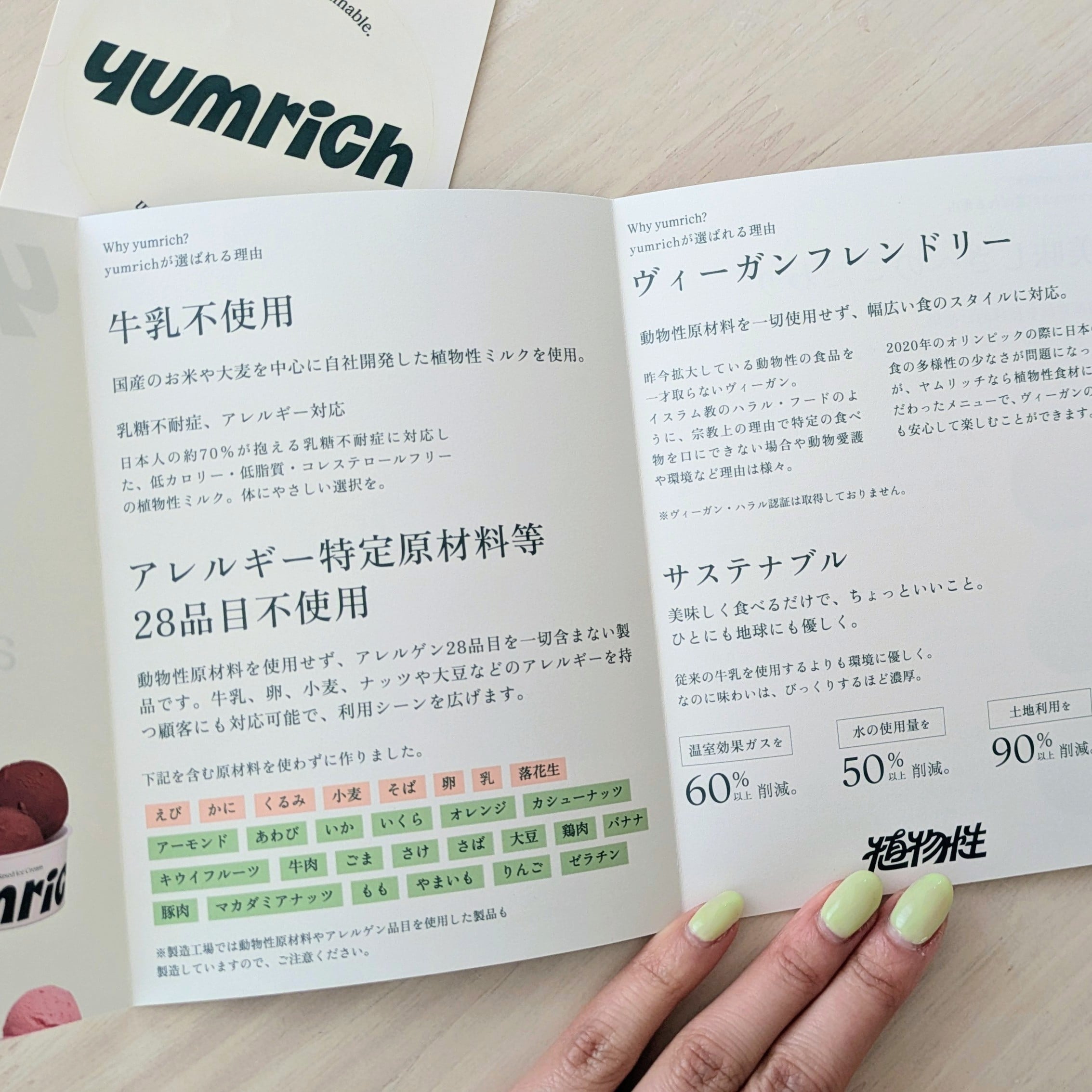 今回いただいたのは、国産のお米や大麦から作られた植物性ミルクベースのアイスブランド「yumrich(ヤムリッチ)」です。