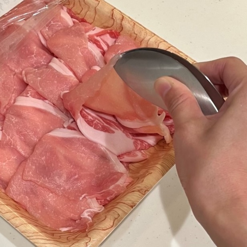 薄いお肉を一枚ずつ剥がしたり、盛り付けたりといった繊細な作業がこれ一本で完結します。