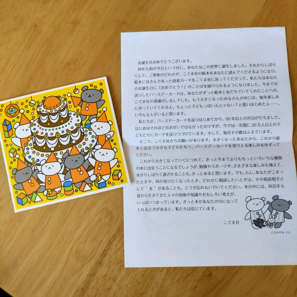 おそらく郵便料金の改定のためか、バースデーカードのお届けは従来10歳までだったのが