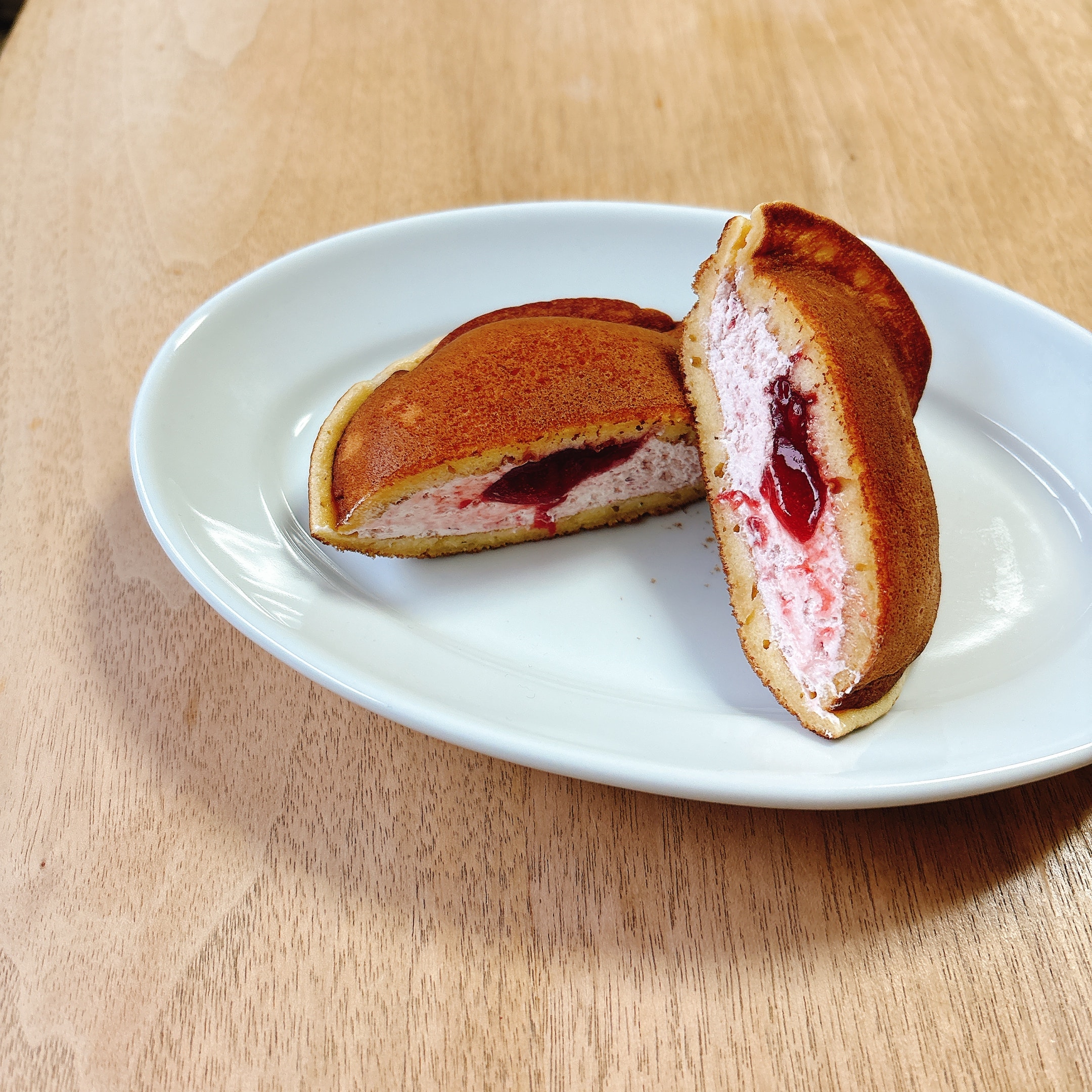 その餡子と生クリームの部分がいちごソースをブレンドされたホイップといちごソースに置き換わった今回のコラボ商品。