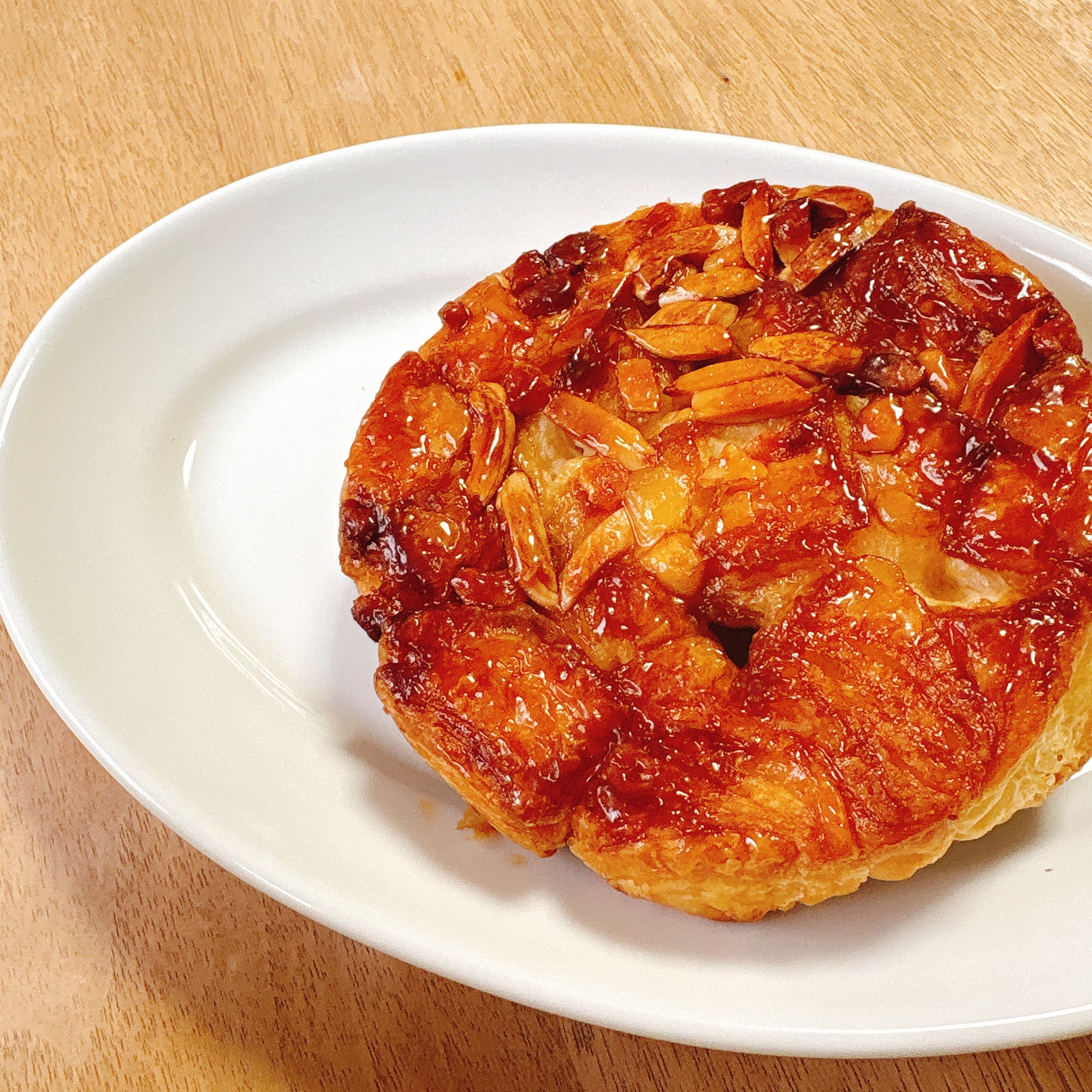 ローソンで発売されたクロッカン裏側は、キャラメルされていて、ツヤツヤしており、ナッツも散りばめられています。片面だけキャラメリゼされており、搾取とした食感とザクッとした食感が味わうことができます。止まらない、美味しさなのですが・・・