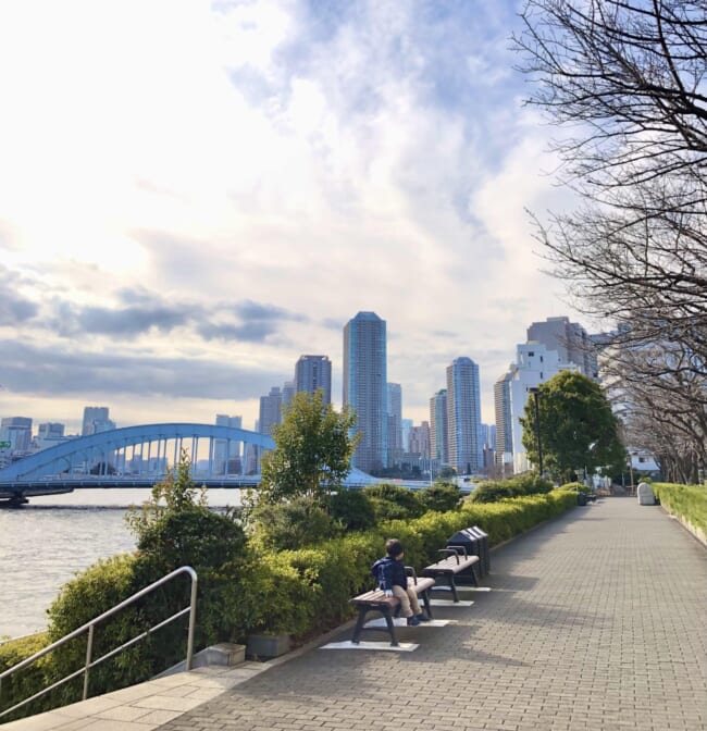 隅田川テラスでのんびり