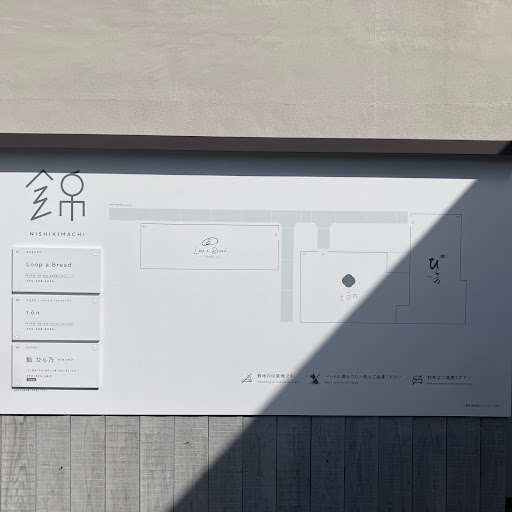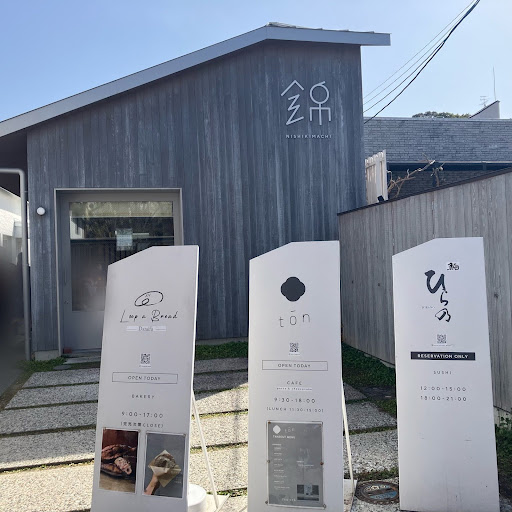 看板を見ると、パン屋、カフェ、鮨料理の三軒のお店が入った施設のようです。