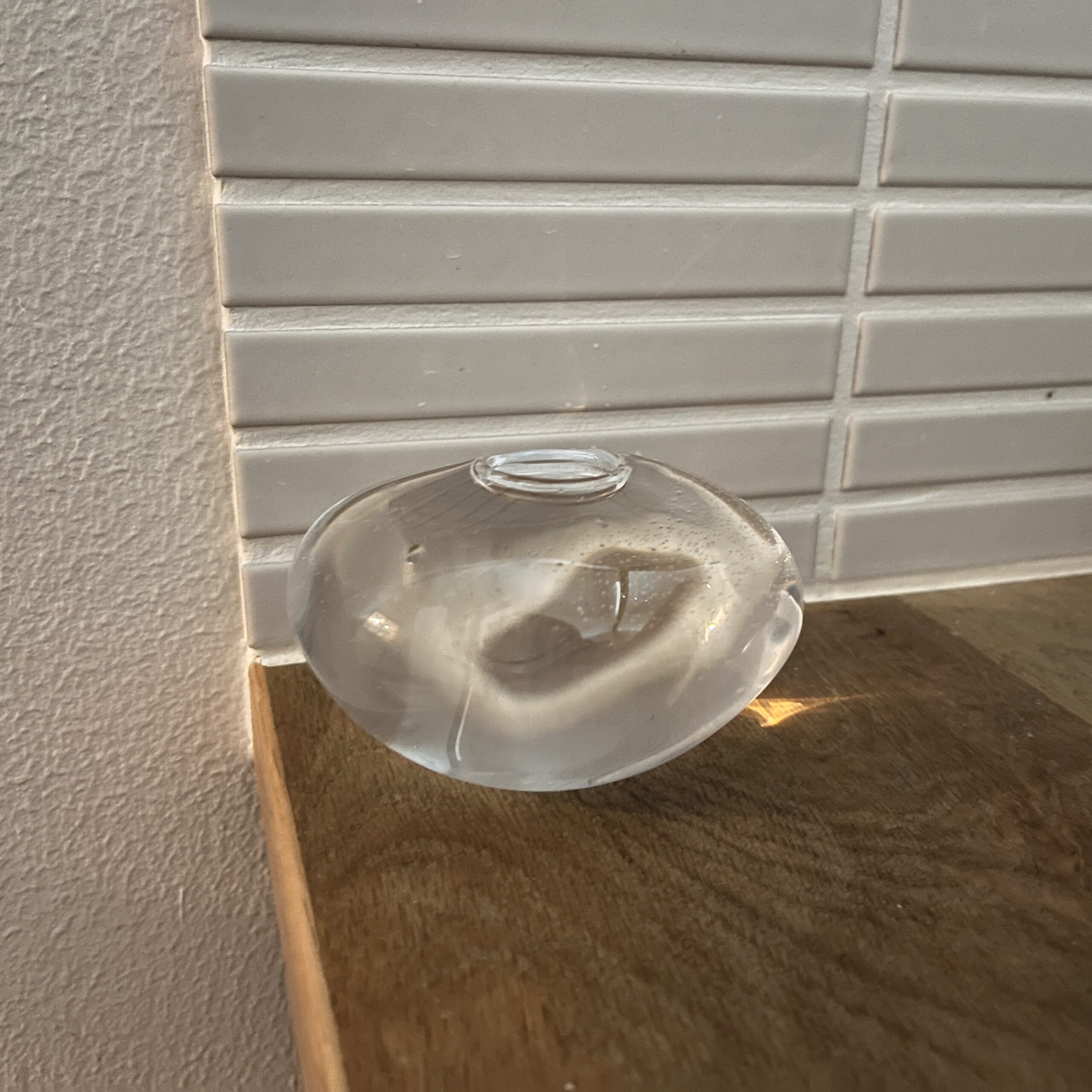 夜、ライトをつけると反射で一輪挿しの下に水たまりができたようになりました。
