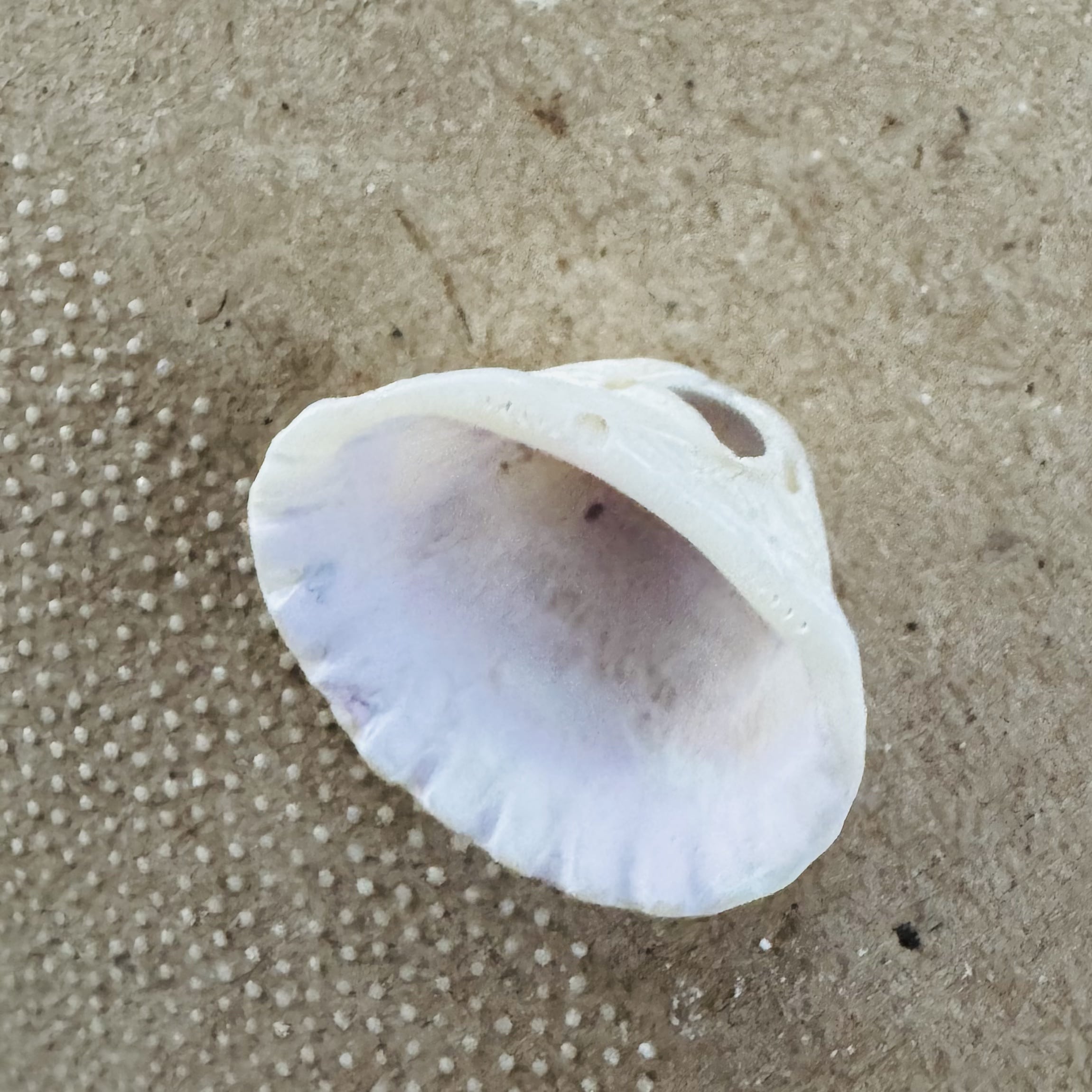 たまに見かける穴の空いた貝殻。外敵に中身だけ食べられてしまった貝殻で、ワイヤーを通すのにちょうどいい感じ。