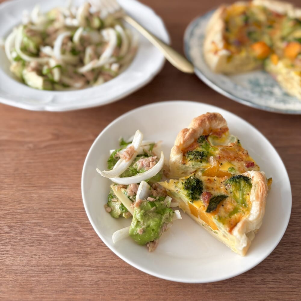 この日のランチは、サラダの他に冷凍パイシートを使った簡単キッシュを作りました。