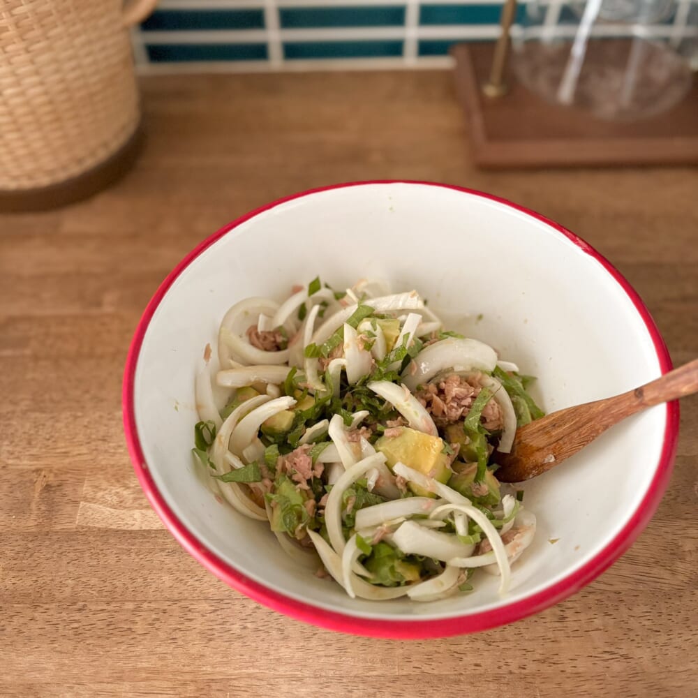 新玉ねぎ以外の材料は、アボカド・大葉・ツナと、どれも私の好きなものばかり。