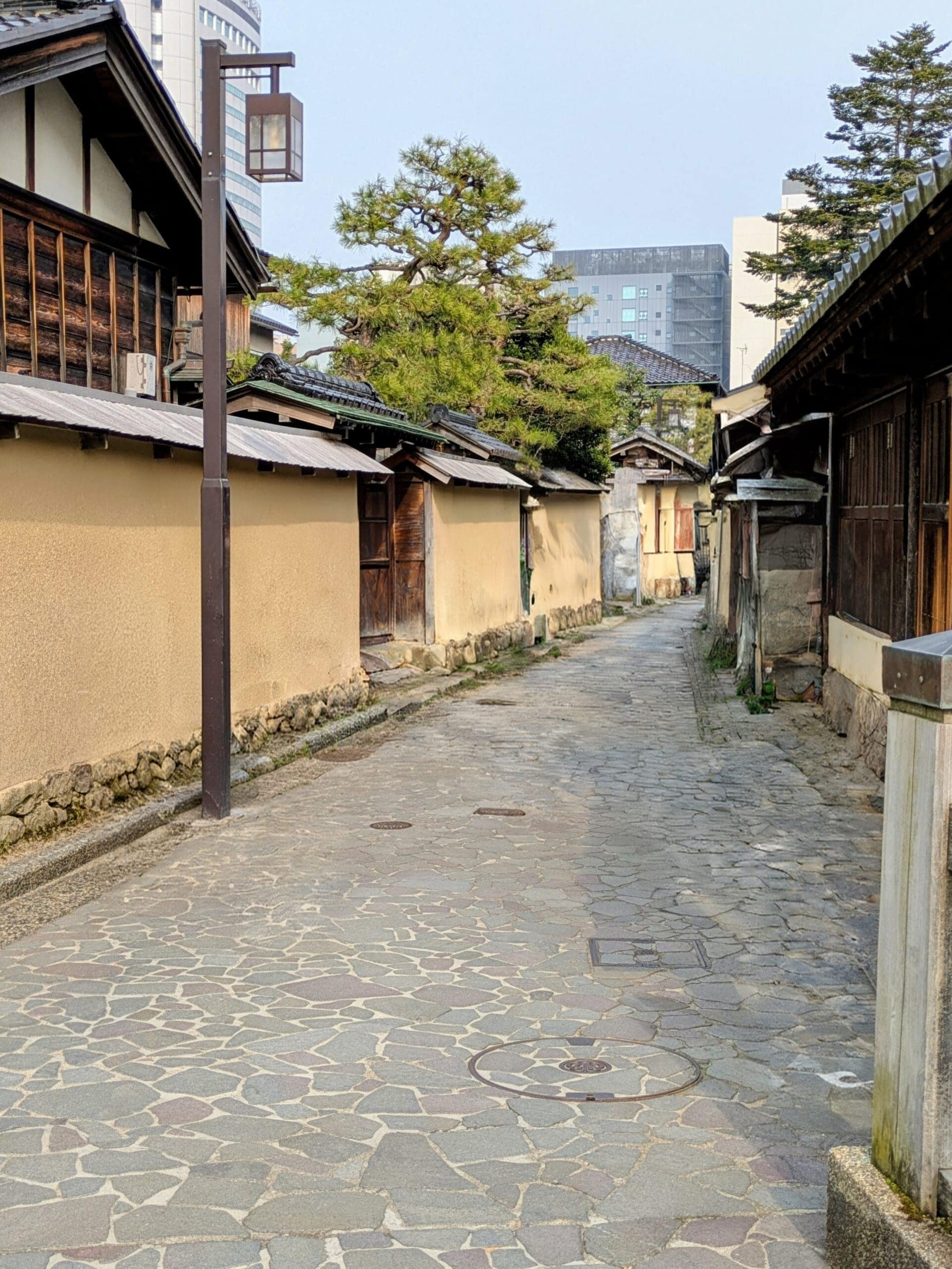 金沢は加賀藩前田家100万石の城下町として発展し、武士の文化が根付いた都市で、こちらも武家達が住んでいた屋敷跡なので、京都では見られない街並みです